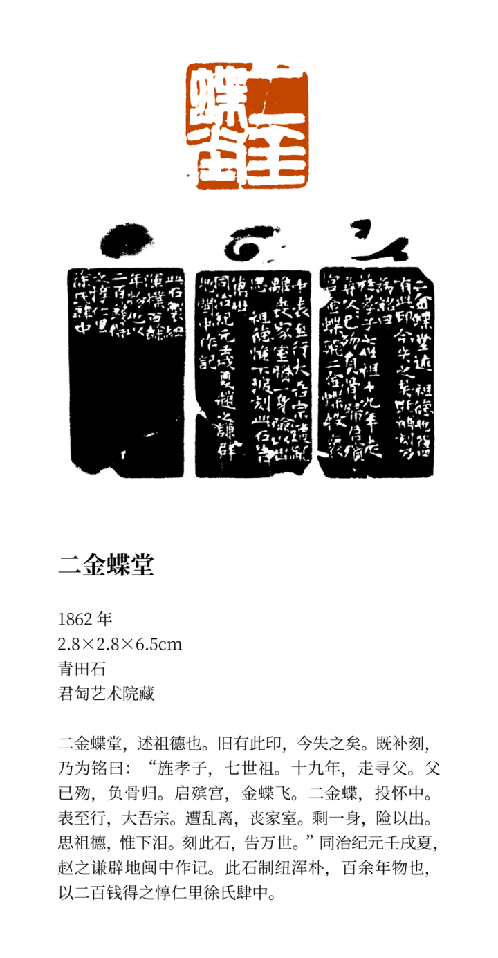 二金蝶堂赵之谦1862年2.8cm×2.8cm×6.5cm青田石君匋艺术院藏