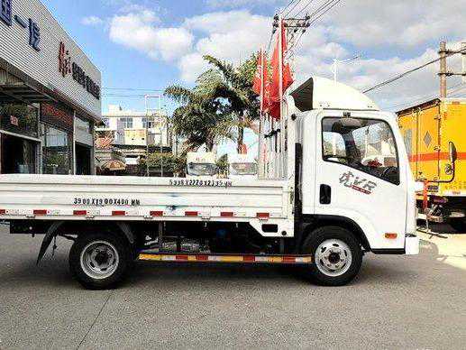 车厢采用了轻卡上标配的低栏板货箱,货箱的长度3.65米,宽度1.91米,货箱栏板高度为0.41米。货箱长度和宽度都是微卡车型上的标准,由于车辆尺寸和规格等原因,这辆车实际总质量并不是4.5吨,而是同微卡级别相同的4吨。虎VR的车身总质量2.25吨,载货重量还可以达到1.5吨以上。