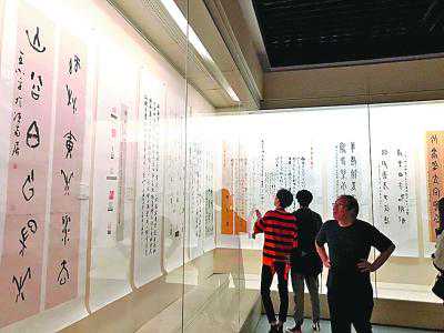 观众在参观“大美甲骨文国际书法大赛颁奖展”