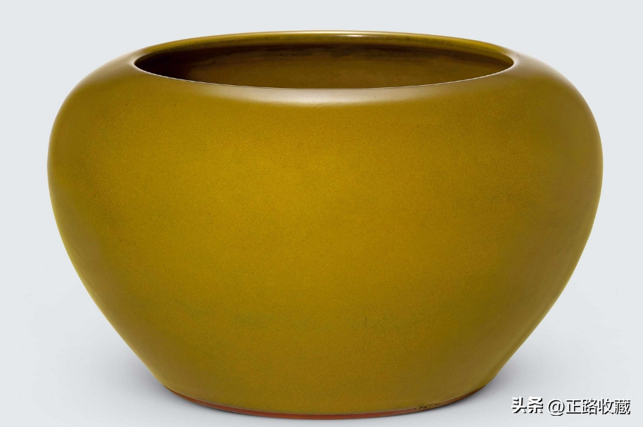 清雍正鳝鱼黄釉案缸