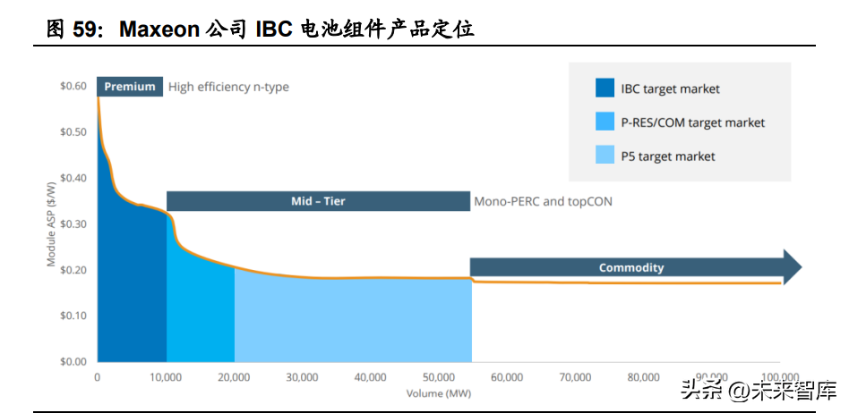 Maxeon公司披露的资料显示,在产品定位方面,采用IBC电池的组件主要面向高端用户群,目标市场的单瓦最低售价较采用单晶PERC电池的组件可高出0.1美元,溢价幅度达50%。这一定程度也表明公司IBC电池虽然具有超越一般电池的转化效率,但制造成本较高,限制了更大范围的应用推广。