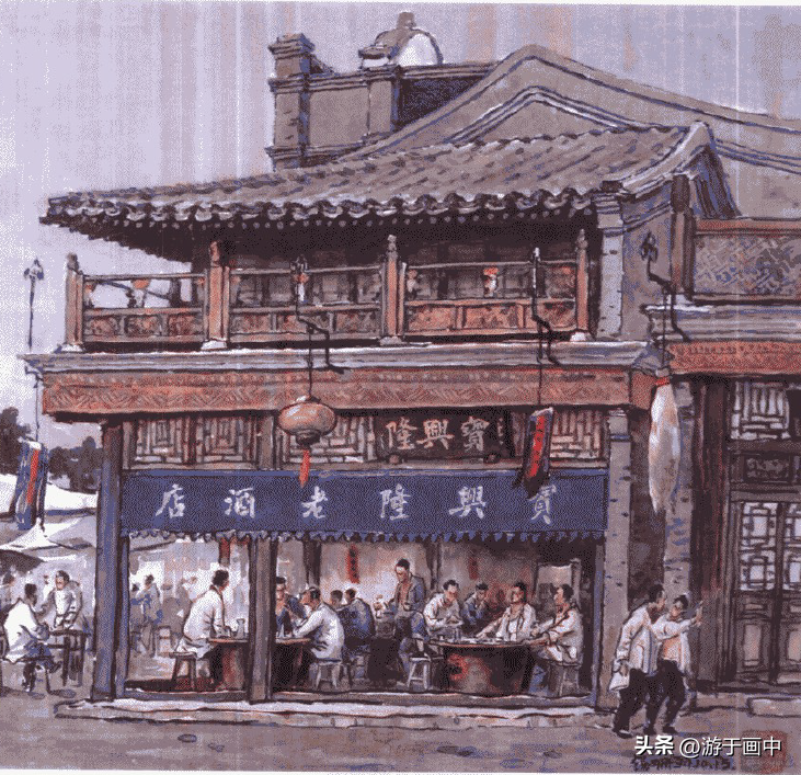 就是酒店。店里把酒缸埋地下一半,缸盖就是桌面,故称”大酒缸”。那时,北京一般酒店没有今天的瓶酒,都卖散装白酒,俗称:"白干儿"。除白酒外,也卖黄酒。备有各种酒菜。冬天,炉子上一个大铜盆,用锡壶烫酒,外面寒风凛冽,店里炉红酒香,令人忘返。