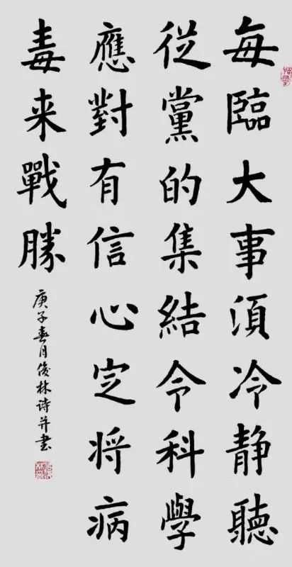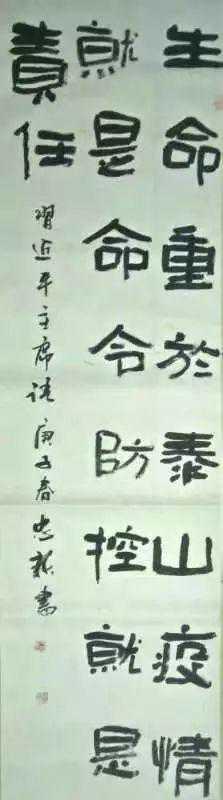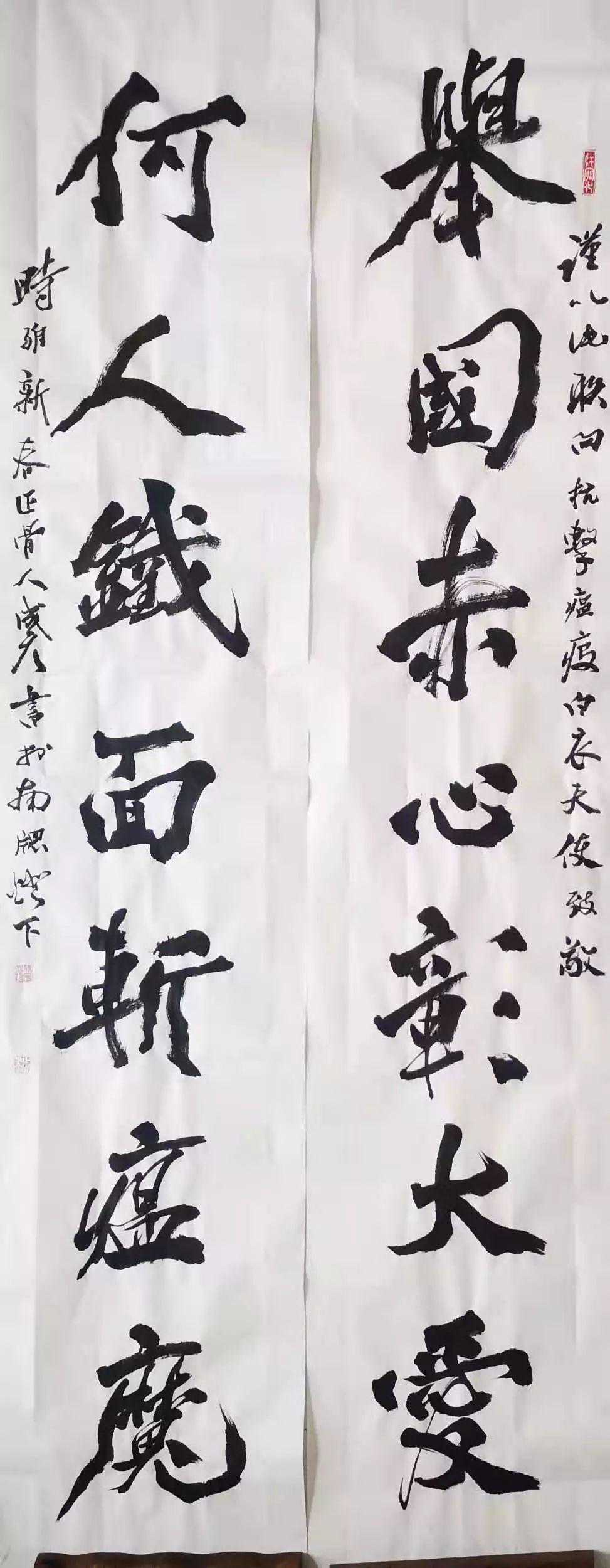 释文:举国赤心彰大爱何人铁面斩瘟魔
