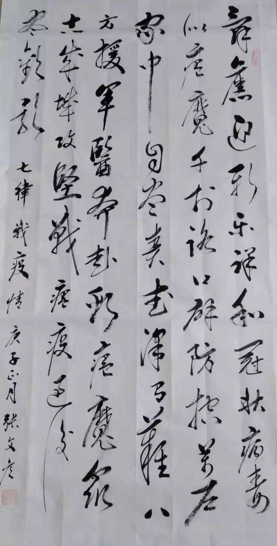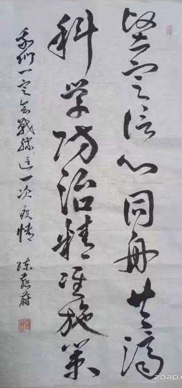 释文:只争朝夕除瘟疫不负韶华绘锦图