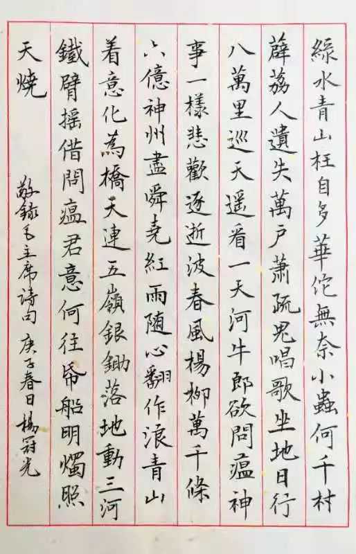 释文:毛主席词两首《送瘟神》《沁园春长沙》