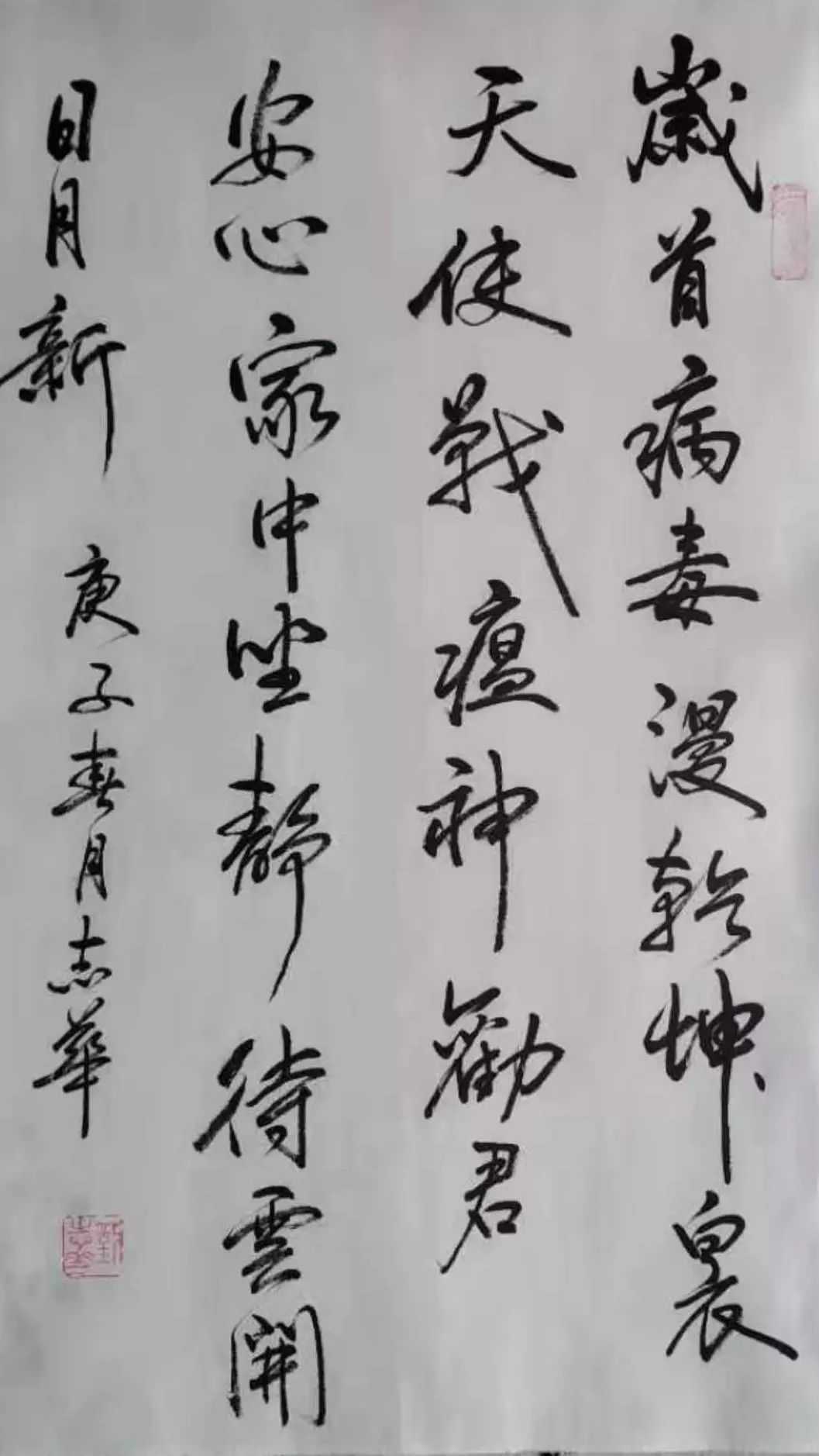 释文:岁首病毒漫乾坤白衣天使战瘟神