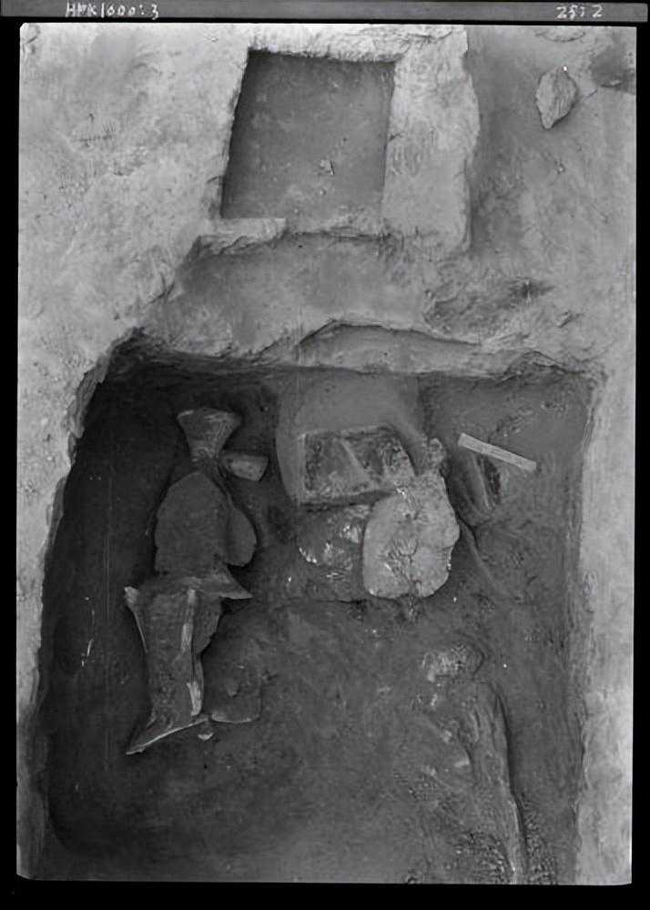 注:1002墓为西北冈第一次、第二次两次发掘所挖,是西北冈诸墓地中最先完成的大墓。发掘至坑底离地面11公尺深时遇地下水面,只能将遗物起出并找到坑底,并确定有木质墓室的存在,但现象图、观察、图像等记录手续皆难以进行。