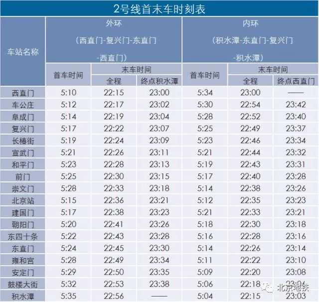 ②2号线内环(积水潭—东直门—复兴门—积水潭)末班车延长18分钟;