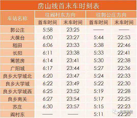 ⑥房山线上行(开往郭公庄方向)末班车延长23分钟,下行(开往阎村东方向)末班车延长25分钟。