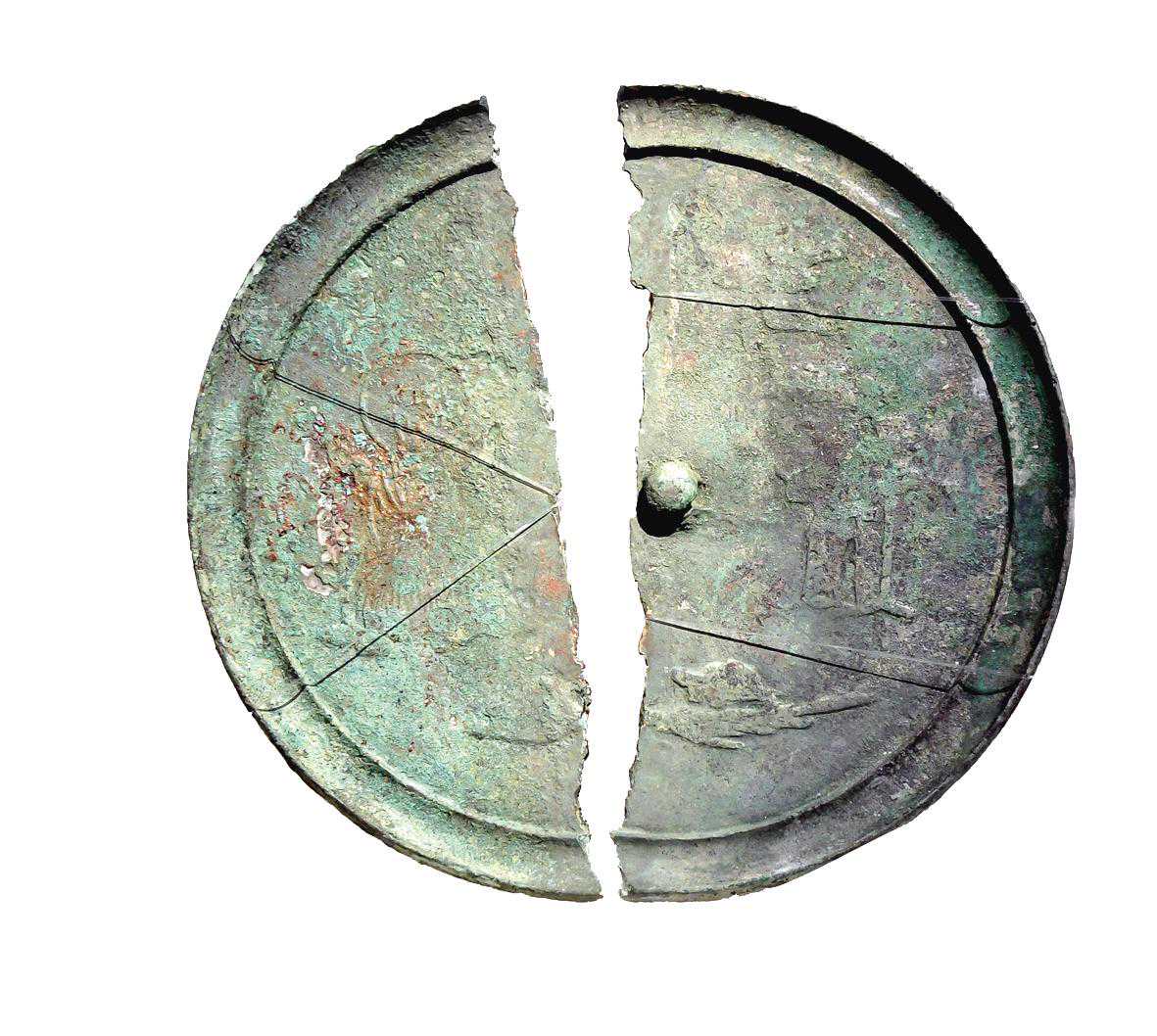 武汉博物馆馆长王瑞华向记者介绍,“今天展出的有一件非常特别的文物——破镜重圆,一半与男墓主人随葬,一半与女墓主人随葬,寓意死后仍然可以在一起!”