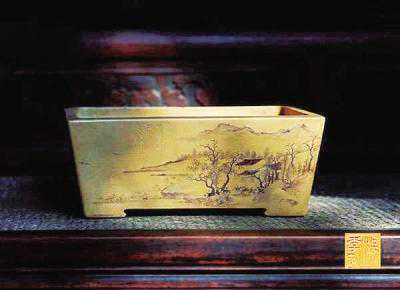 名家陶刻的紫砂花盆,也很值得收藏。“知名的陶刻家包括任淦庭、谭泉海、徐秀棠等,经他们刻绘的紫砂花盆,价值会大大提升。”