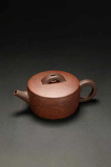 纵观《韵律》此壶,其壶身宽大稳重,这样看来别说从外形上还真真就有点濮晨身形的影子,这是不是就是紫砂行业里常常说道的品壶识人呢。“濮樱居”是濮晨与陆晓樱夫妻共创的紫砂工作室,十来年前在“濮樱居”初见濮晨时,那个时候他看上去还有点青涩稚嫩,记得那个空间不算大的“濮樱居”,摆满了各式各彩的吕氏壶艺的作品,颇有点“斯是陋室,惟吾艺馨”的味道。说起来濮晨夫妻与吕氏壶艺的渊源很深,濮晨是吕派壶艺宗师吕尧臣的侄孙,而陆晓樱是其子中国工艺美术大师吕俊杰的爱徒,两人从相识结缘到伉俪携手共创,即使不甚了解也能够想象多半是因为吕氏一脉的缘分使然。濮晨与“濮樱居”的逸事,联想到当初相较略失色的处所,与那一把把钟灵毓秀的绞泥壶,生动形象的对比,感观上又有点像品鉴濮晨《韵律壶》的感觉,那浑朴的壶身上淡然飘过的胶泥,虽然素朴但一下子生色了起来,是不是有点似曾相识的感觉,仿佛一切都化在了这把壶里,纵有其他千娇百媚,吾独爱这一款,因壶更因人。
