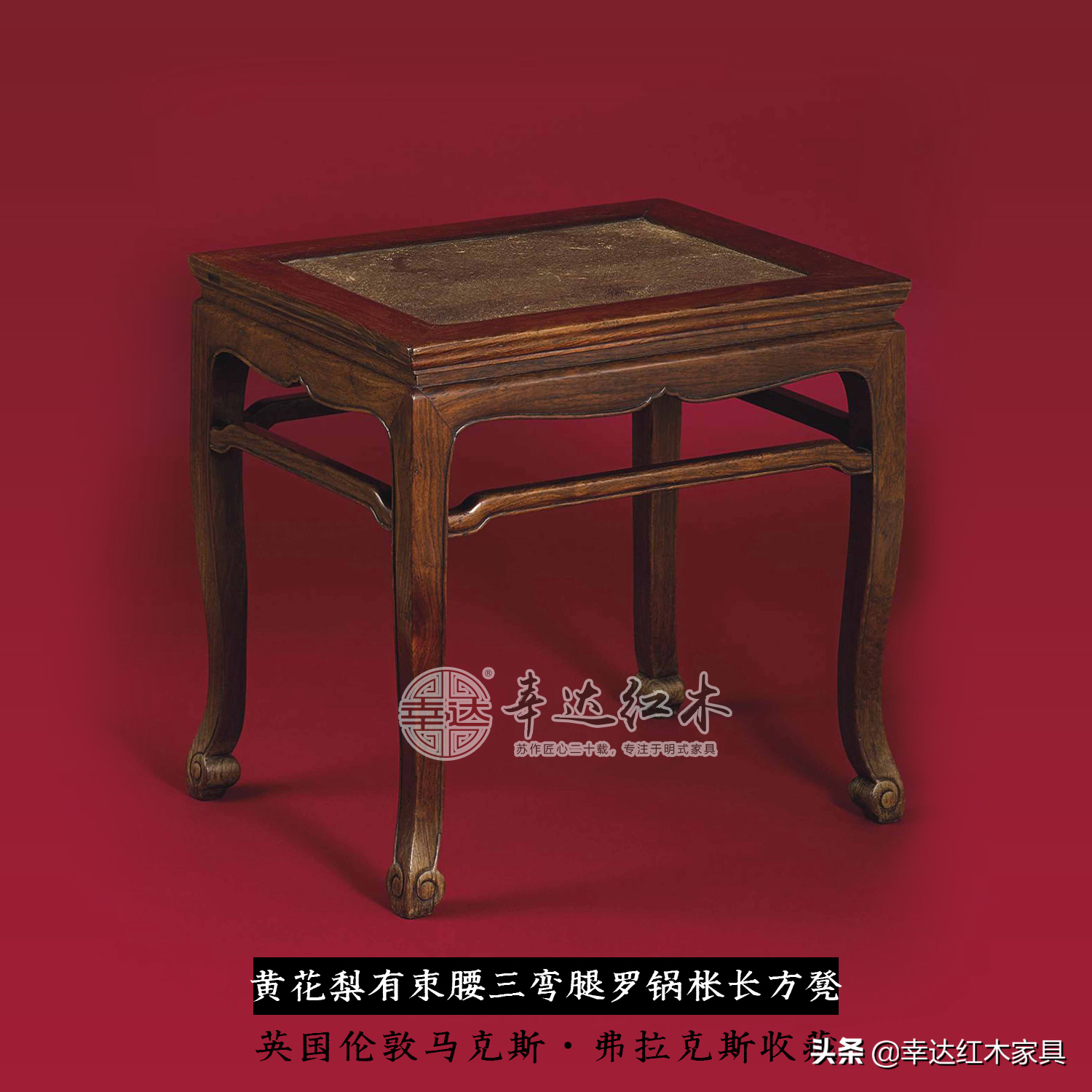 下图这一款,名字就是“明黄花梨有束腰三弯腿罗锅枨长方凳”。