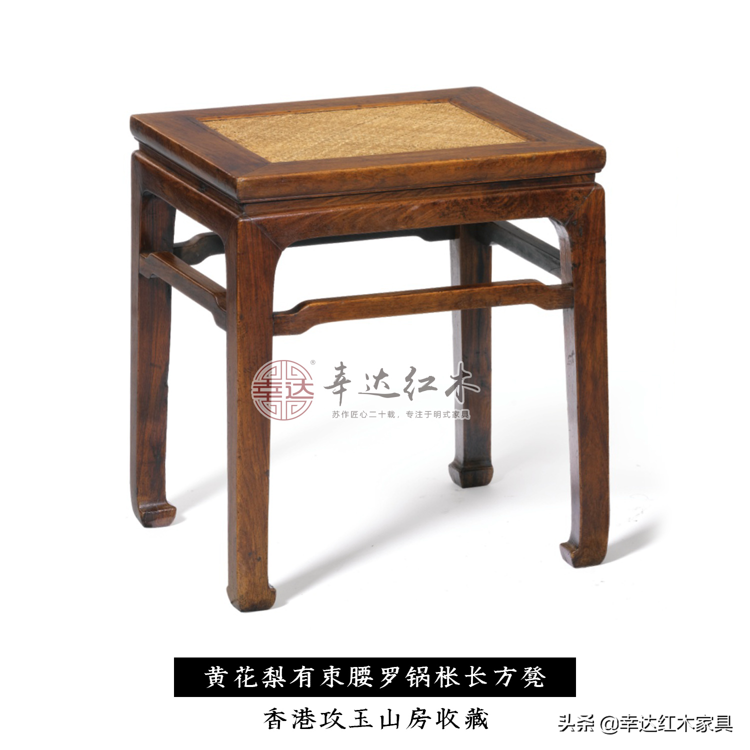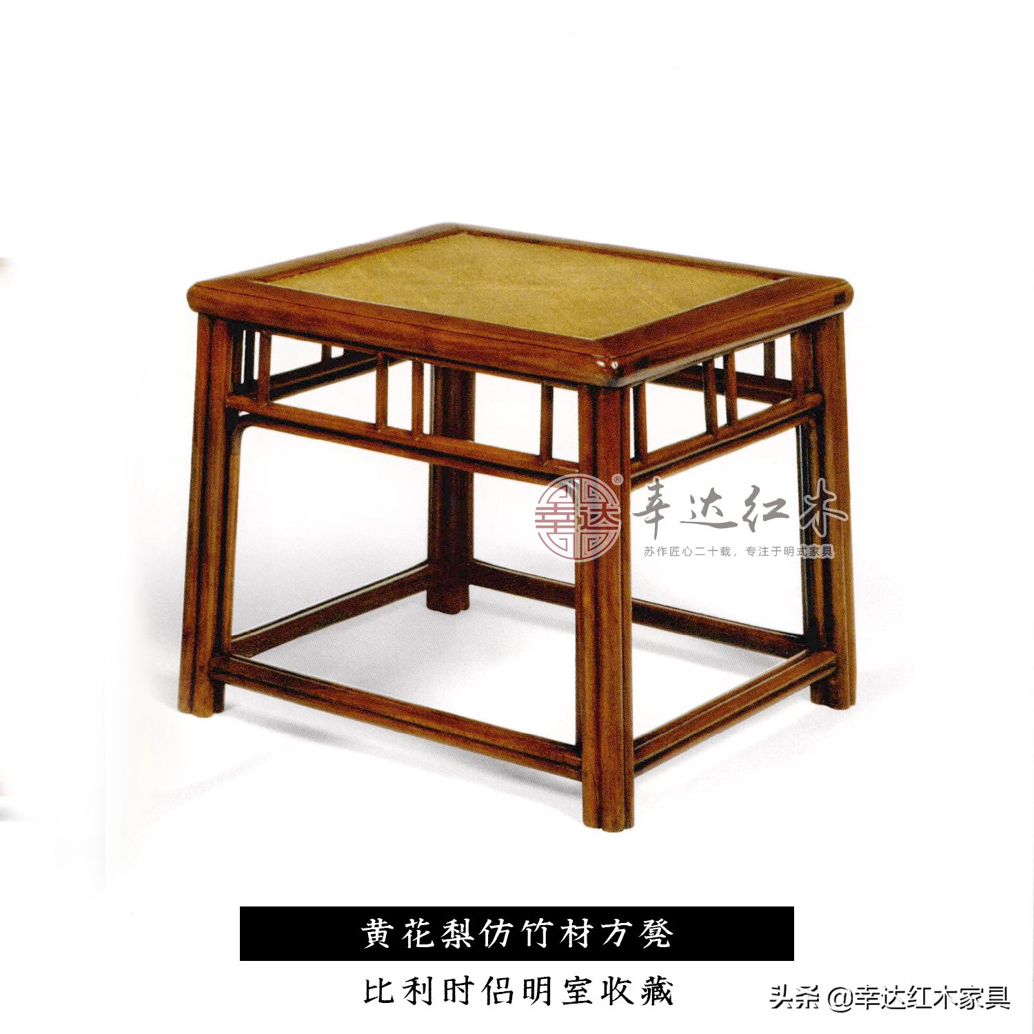 举个例子,最简单的“明黄花梨无束腰直足直枨小方凳”,如下图:
