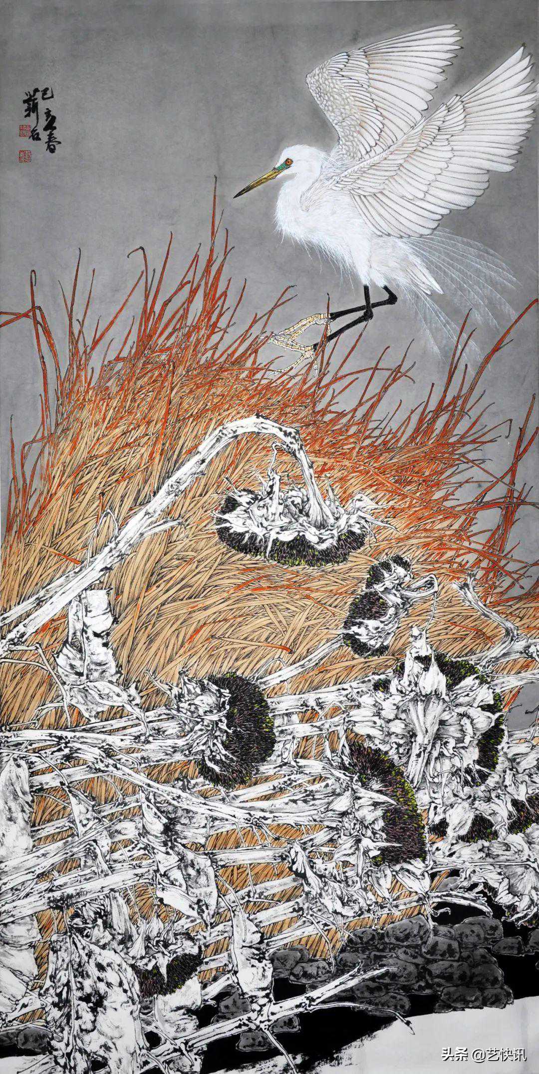 寒塘栖禽180×96cm纸本设色2018年