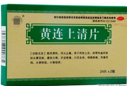 清热类药物黄连上清片:可用于头晕目眩、牙齿疼痛、口舌生疮、咽喉肿痛、耳痛耳鸣、大便秘结、小便短赤。
