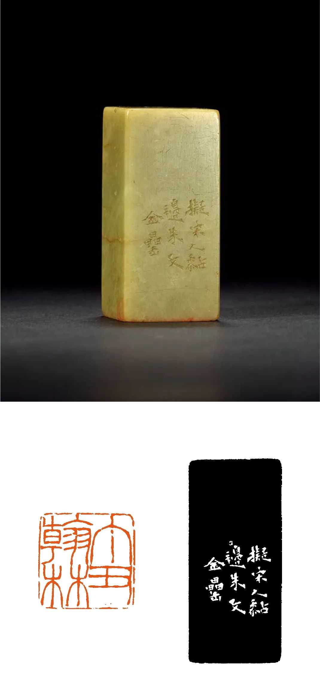 边款:拟宋人黏边朱文,金罍。