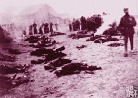 1939年“五三”“五四”大轰炸后,防护团员从废墟中清理出来的被炸市民的尸体情景一。