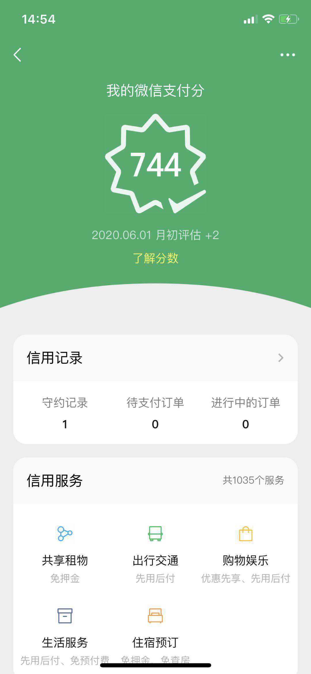 微信称,只要分数达到一定要求,就可以使用微信超过1000个信用服务,其中包括共享租物、出行交通、购物娱乐、生活服务、住宿等多个生活场景。