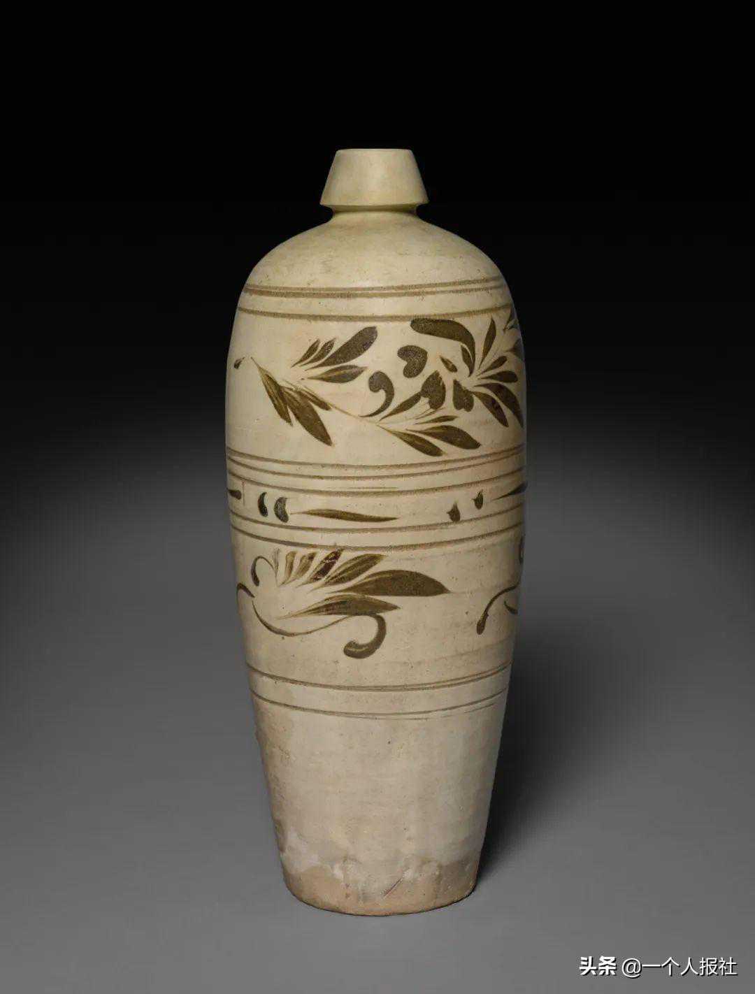 北宋磁州窑白釉绘花盘口瓶