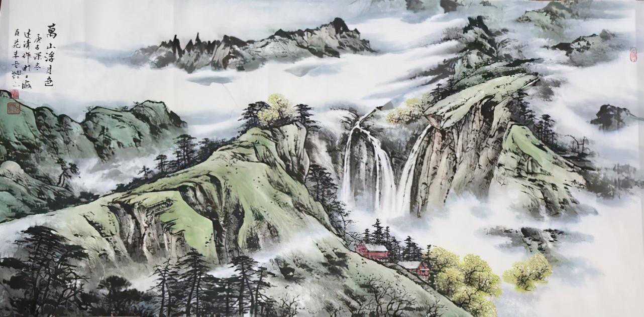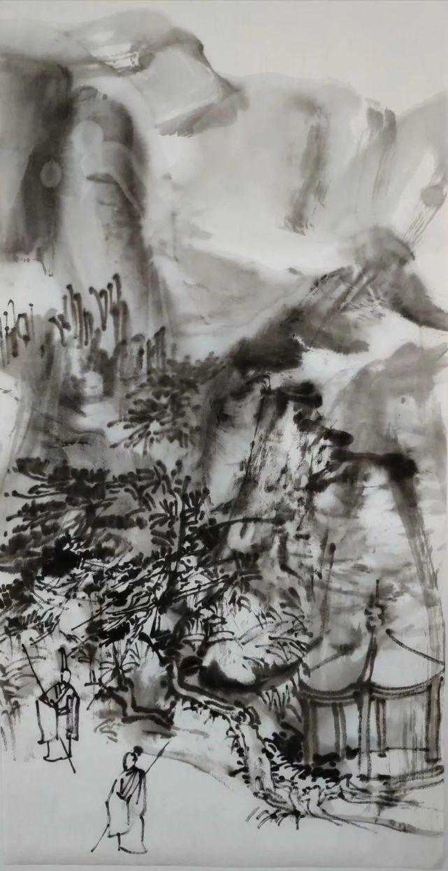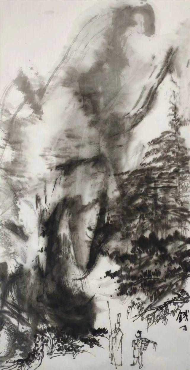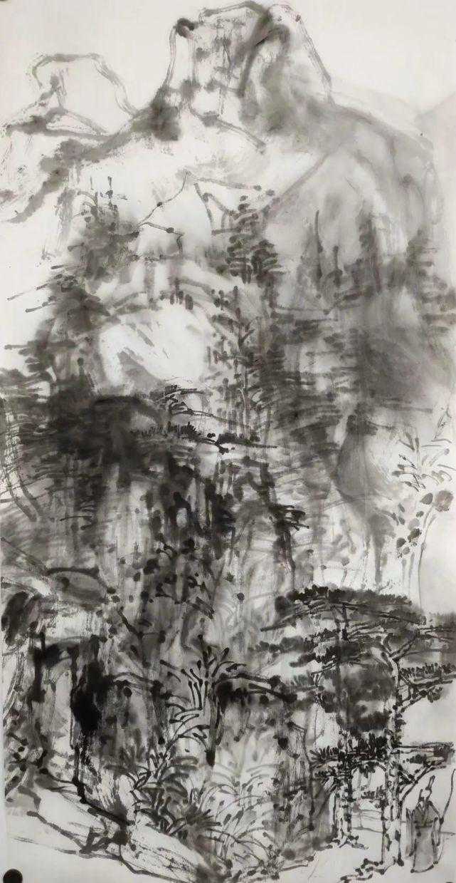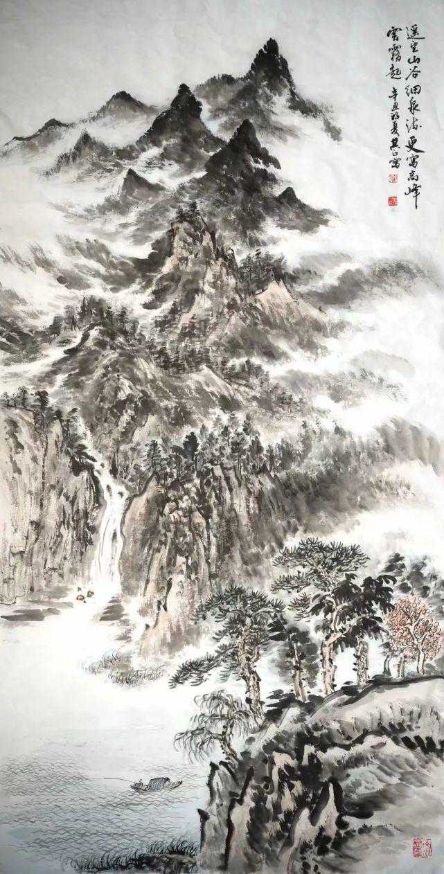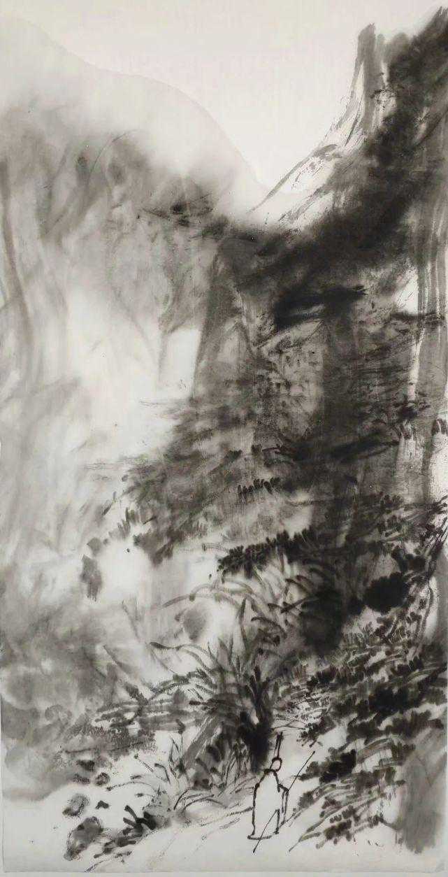 《遥望山谷溪泉流,更写高峰云雾起》140×70cm2021年
