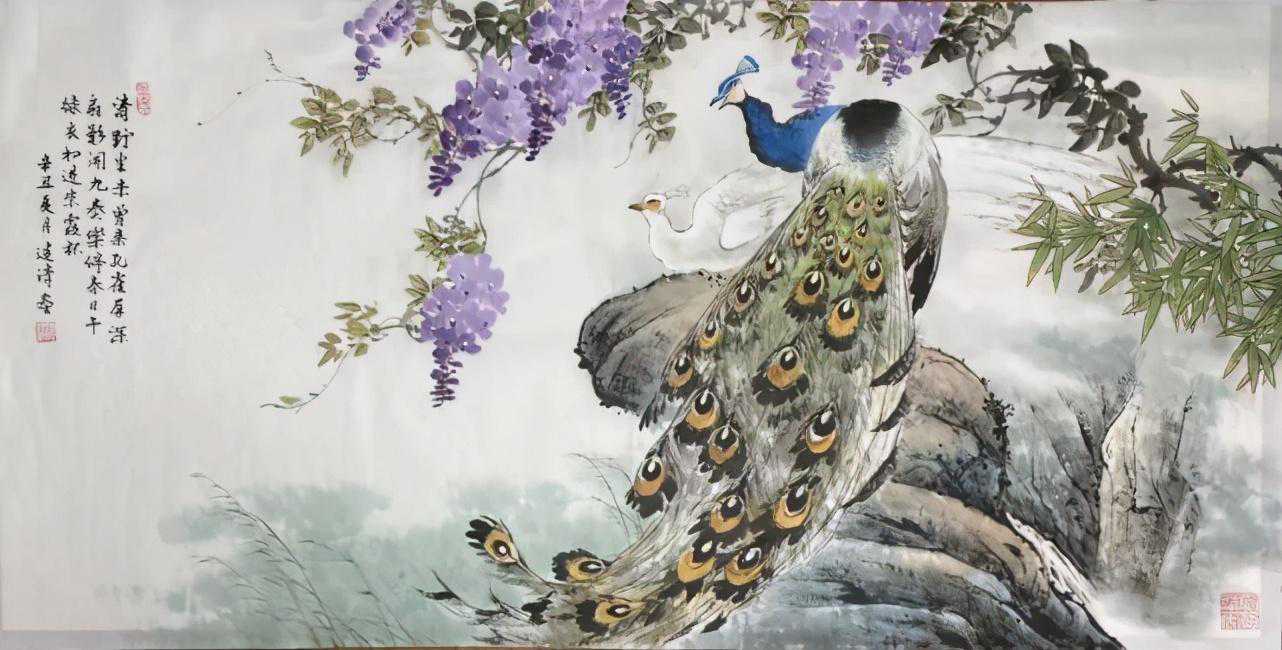 《华清野尘未曾开,孔雀屏深扇影开》136×68cm2021年