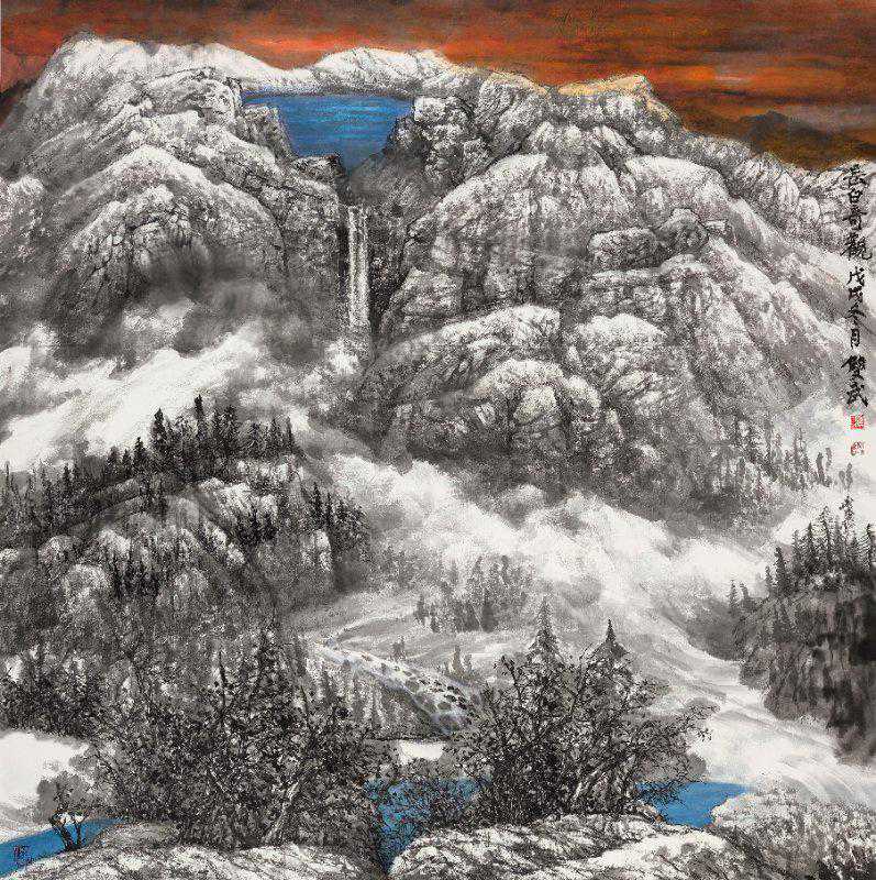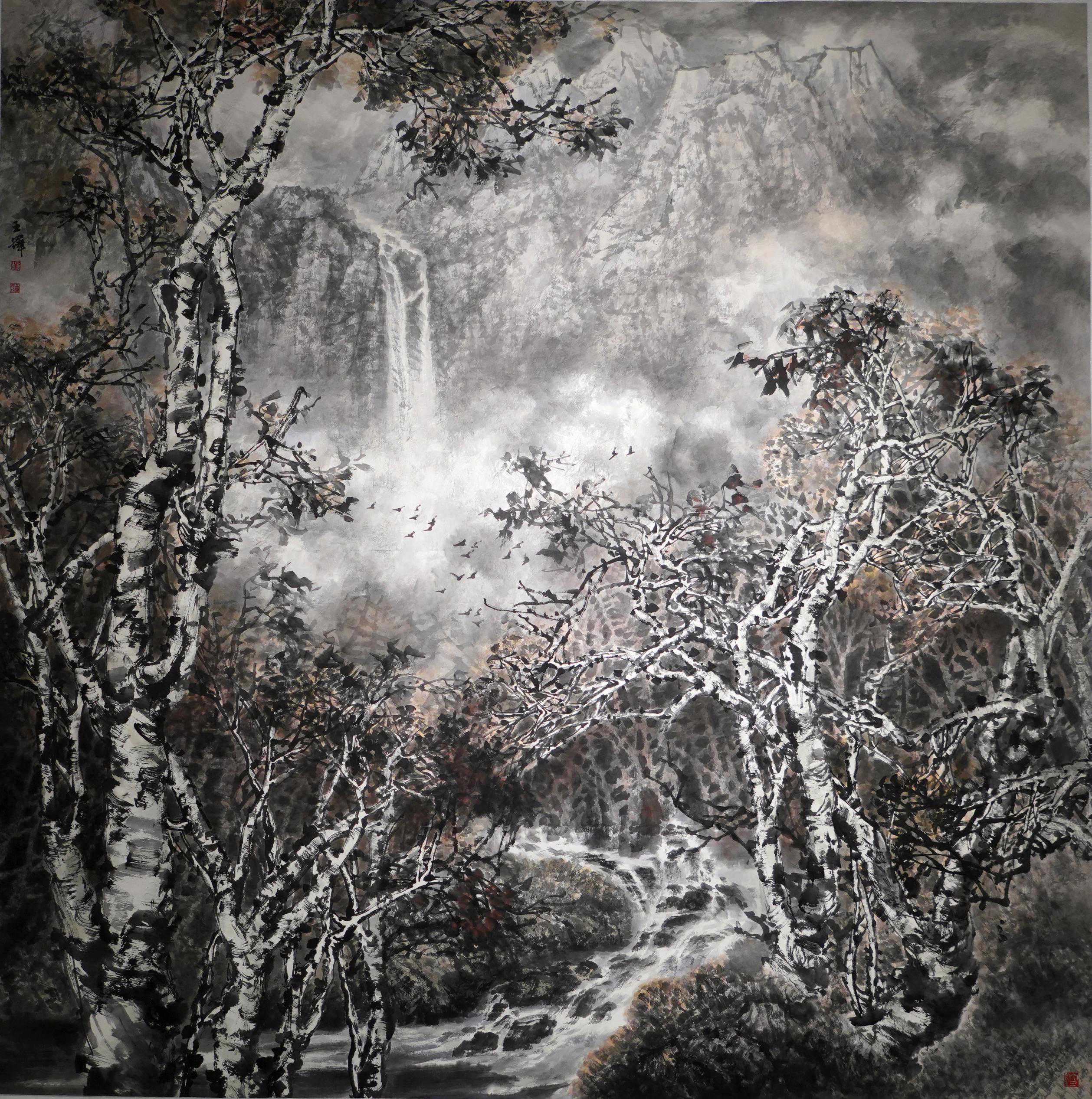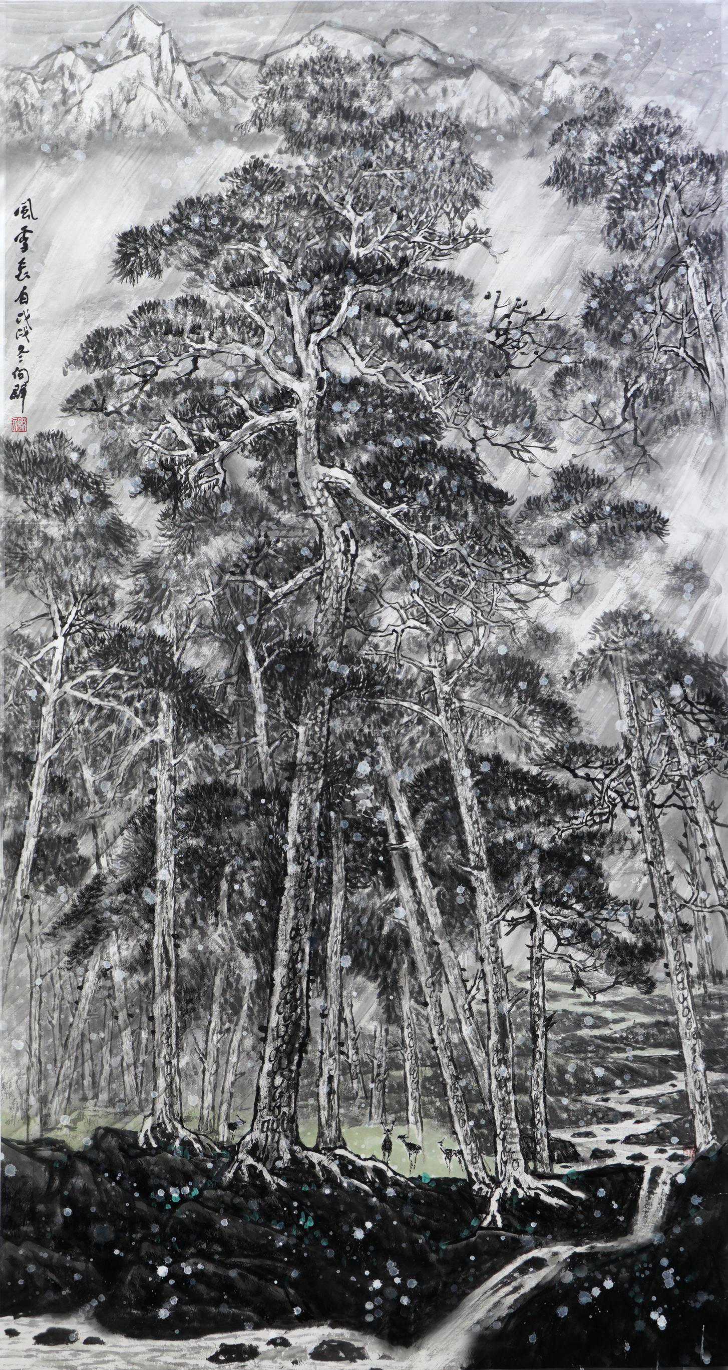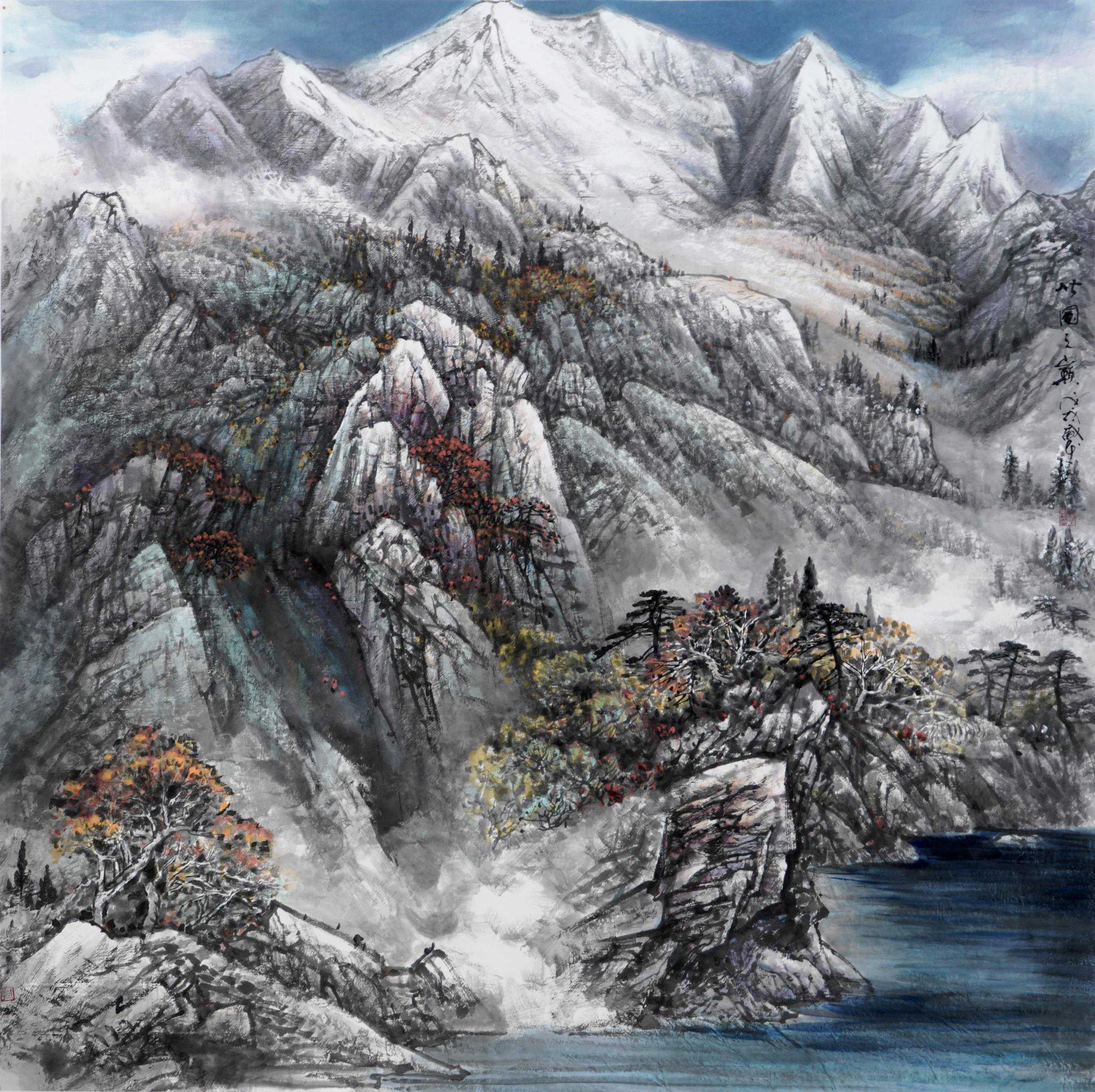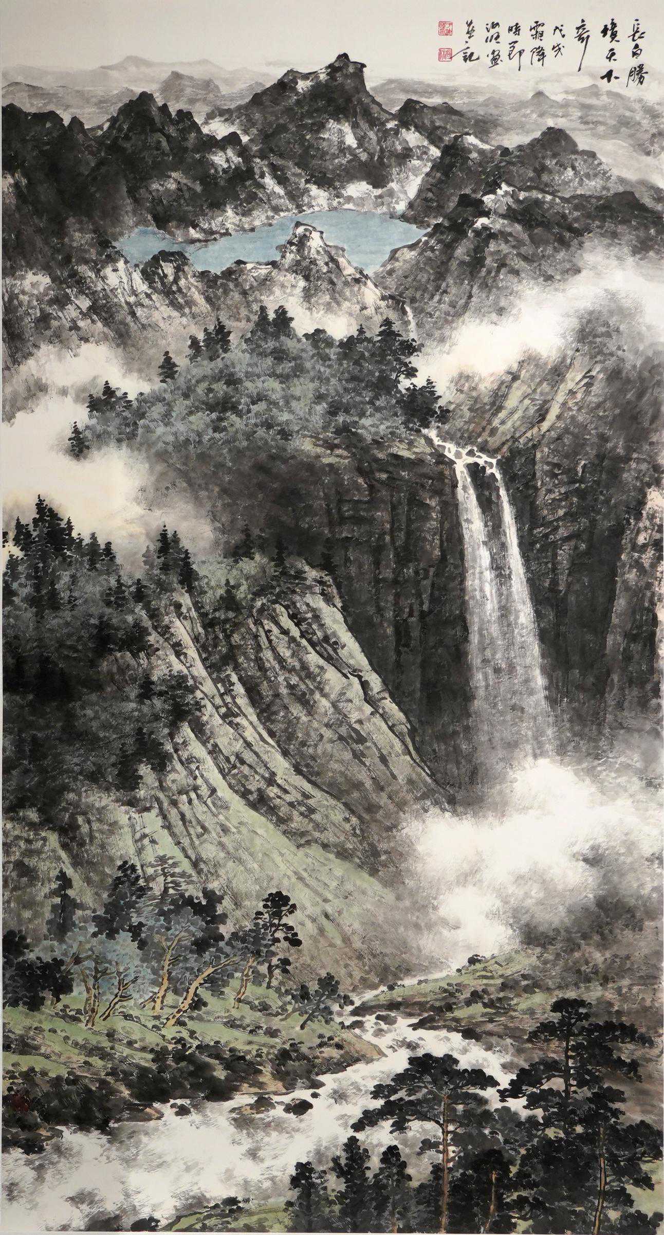 以“笔墨回归丘壑,为祖国河山立传”为宗旨的当代北派山水画家队伍,是由一批有识的画家自发组织起来的美术创作队伍,没有任何官方背景,也没有可以依靠的平台,但正如古人云:“位卑不敢忘忧国”,画家们自觉地紧随时代以大山水画风描绘祖国的大美河山,立足传统笔墨,勇于开拓创新,塑造当代北派山水新格局,我们祖国东北的长白山,在许多人心目中是谜一般的神山圣水,也是北派山水画家们心驰神往的艺术创作圣地。