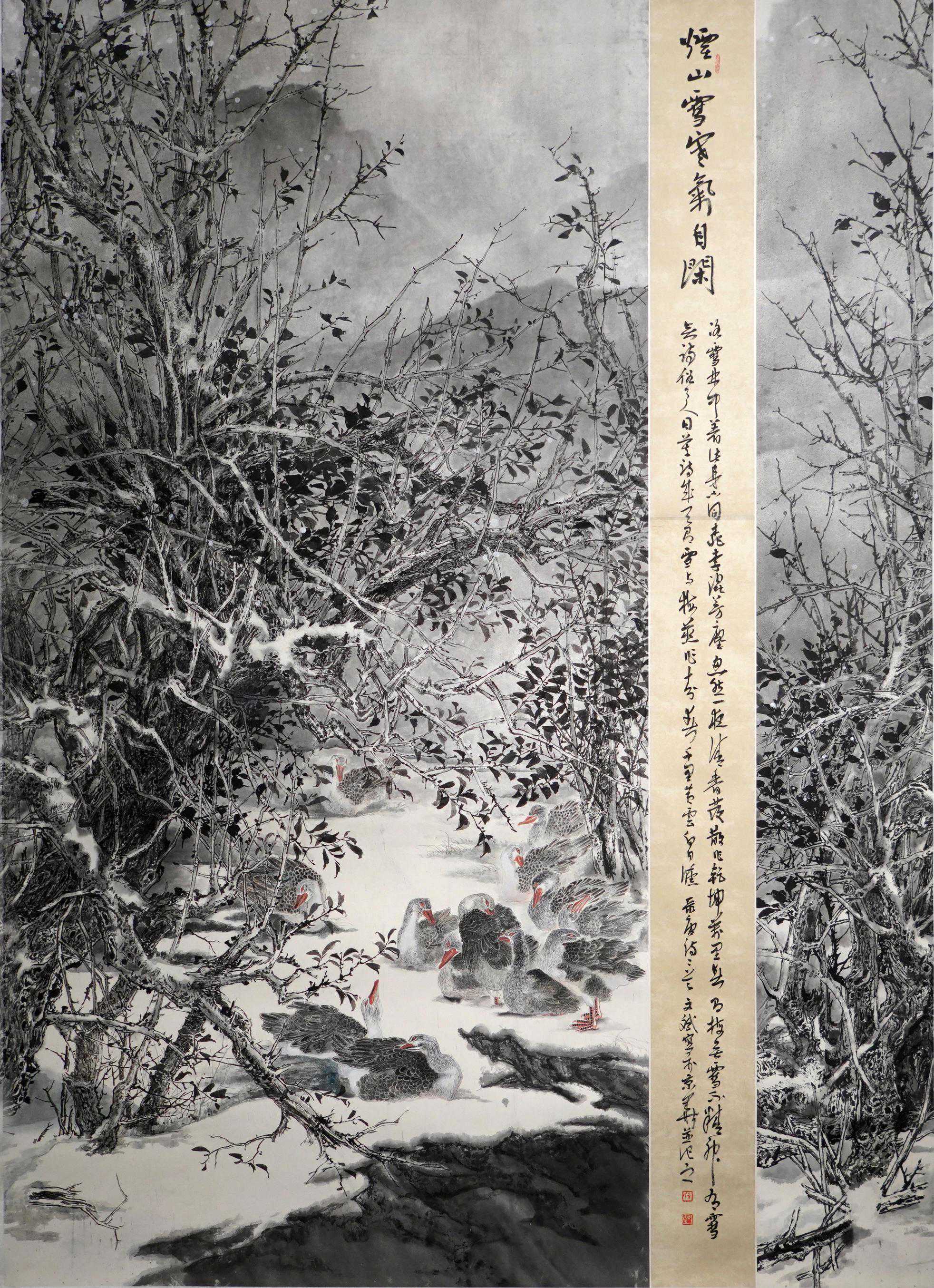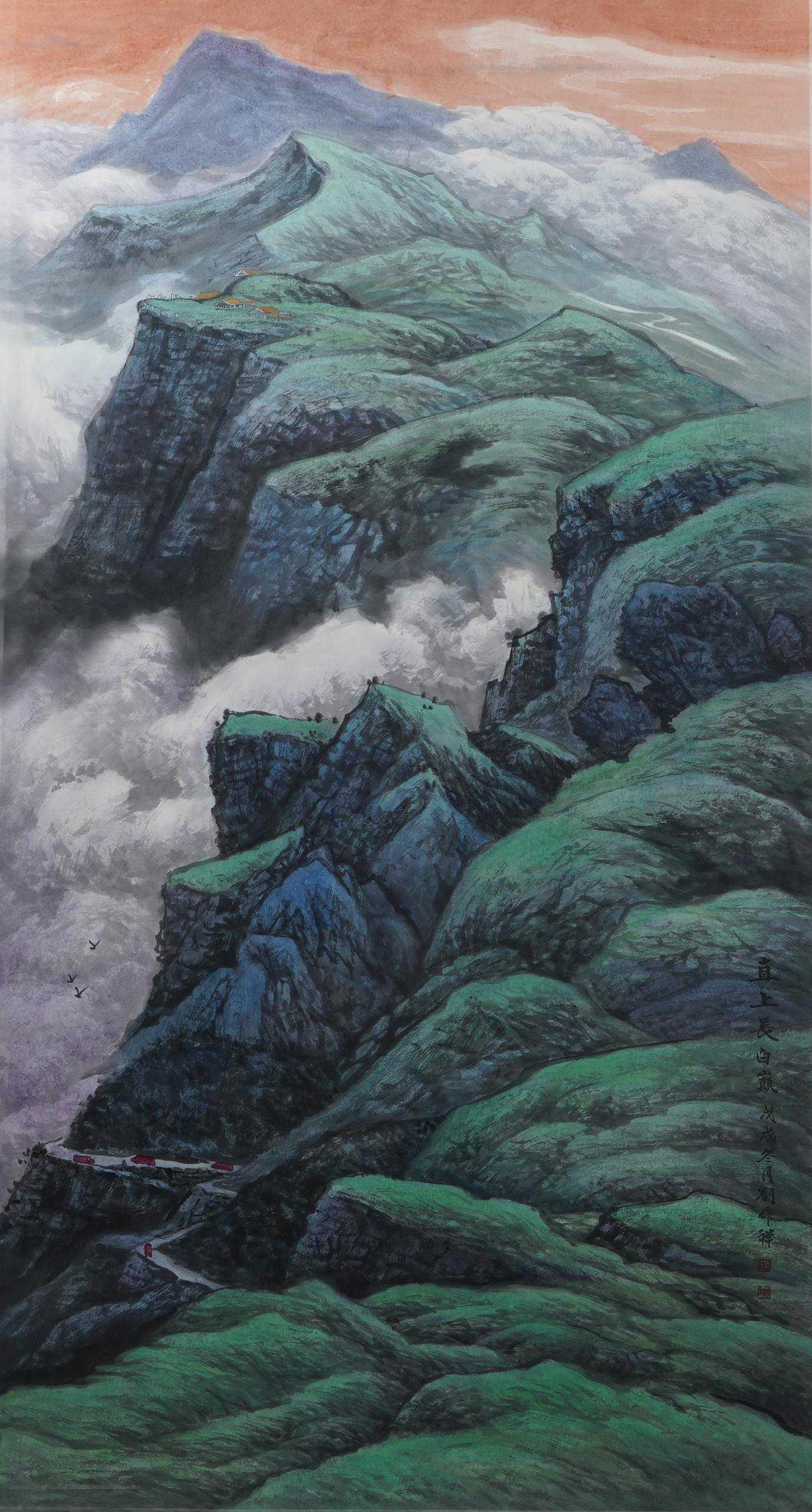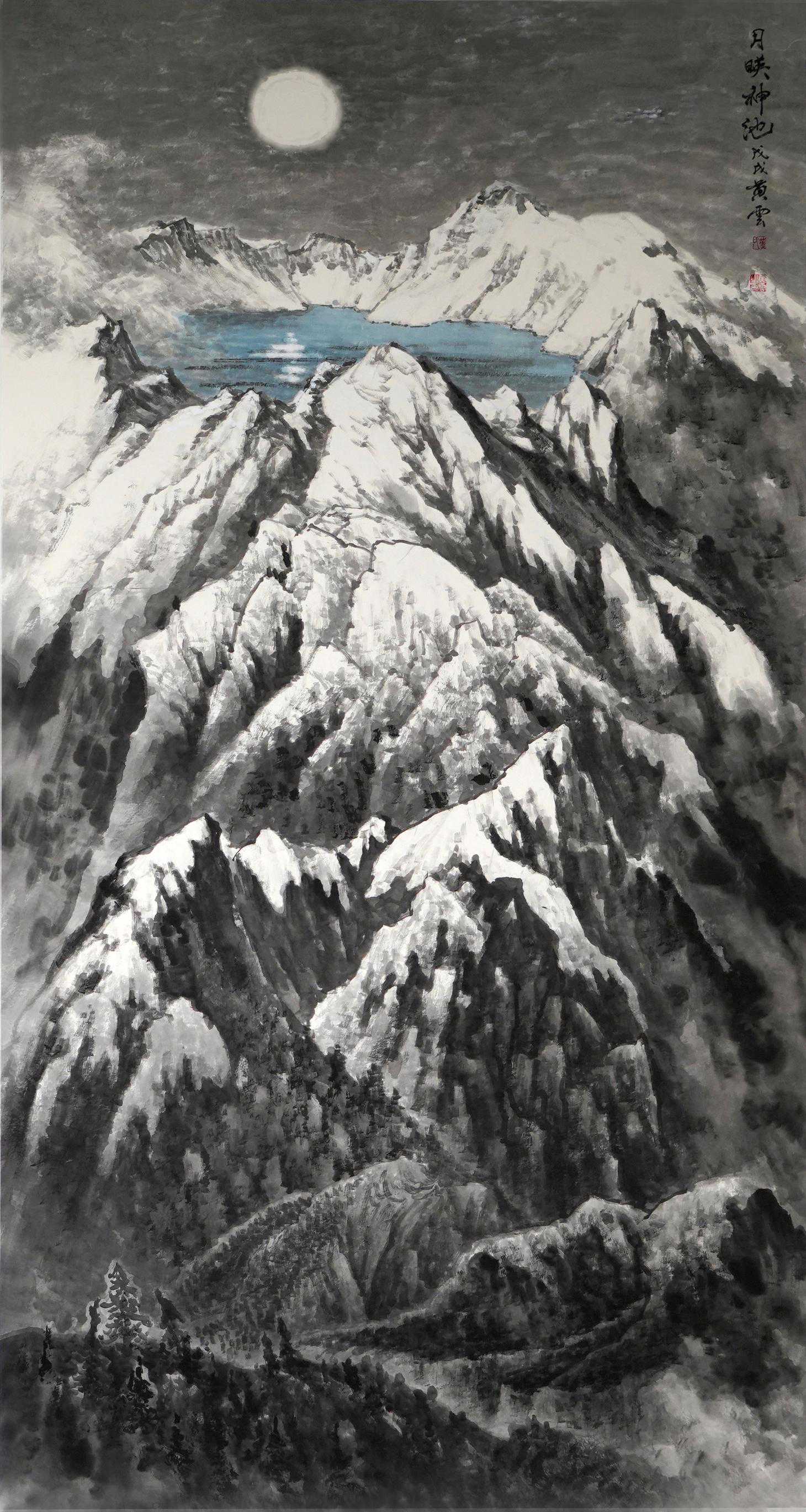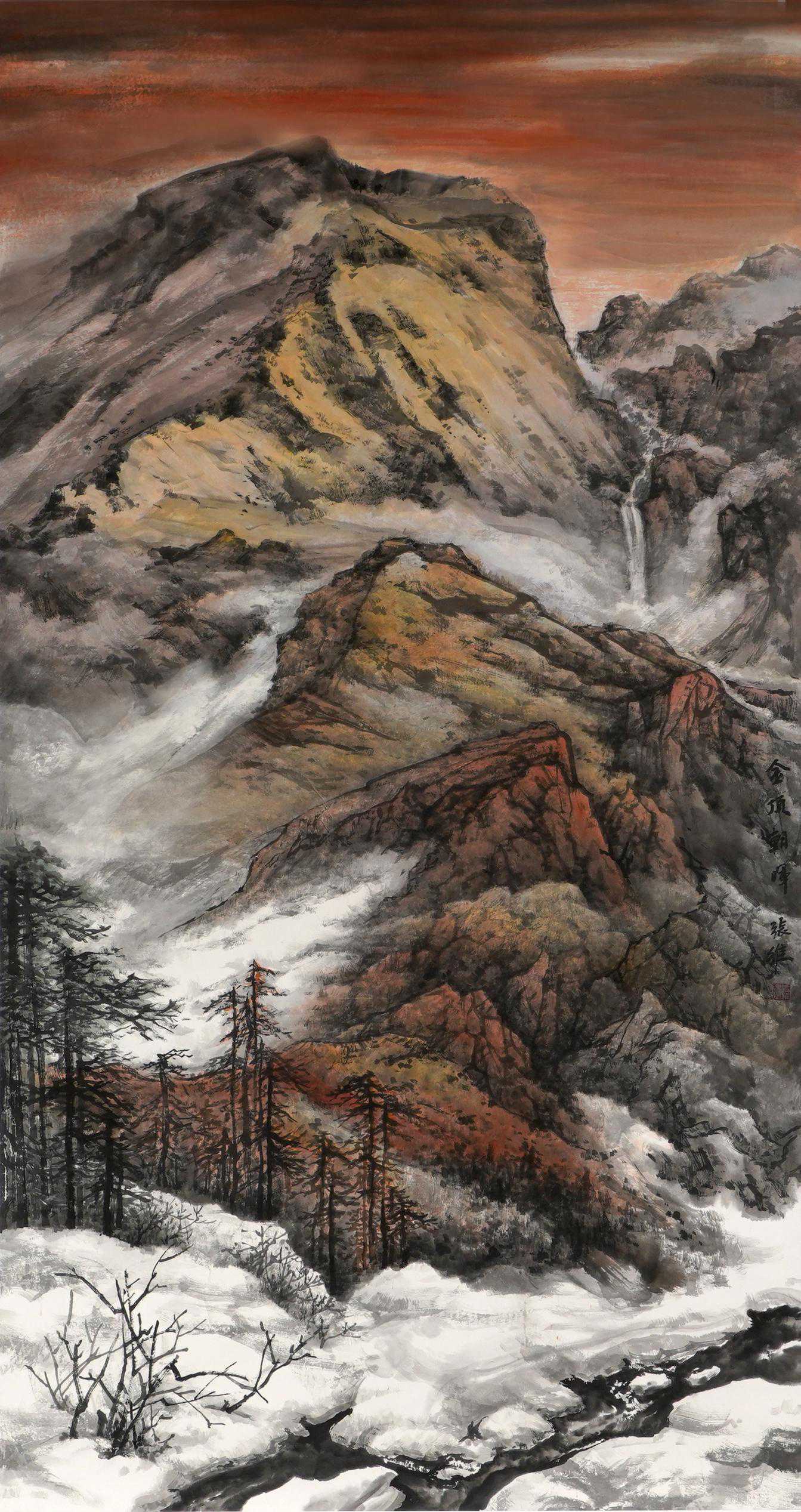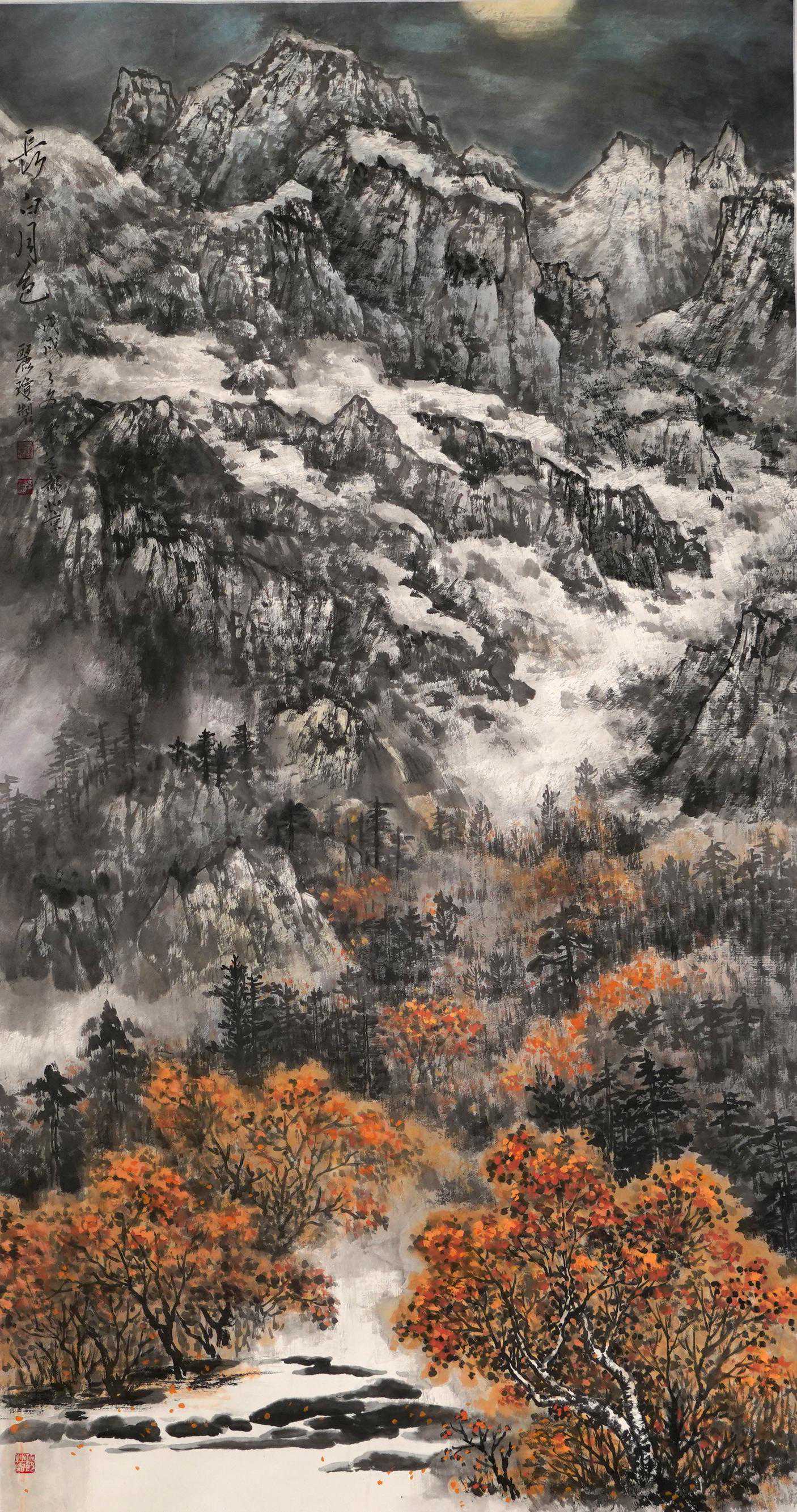 以“笔墨回归丘壑,为祖国河山立传”为宗旨的当代北派山水画家队伍,是由一批有识的画家自发组织起来的美术创作队伍,没有任何官方背景,也没有可以依靠的平台,但正如古人云:“位卑不敢忘忧国”,画家们自觉地紧随时代以大山水画风描绘祖国的大美河山,立足传统笔墨,勇于开拓创新,塑造当代北派山水新格局,我们祖国东北的长白山,在许多人心目中是谜一般的神山圣水,也是北派山水画家们心驰神往的艺术创作圣地。