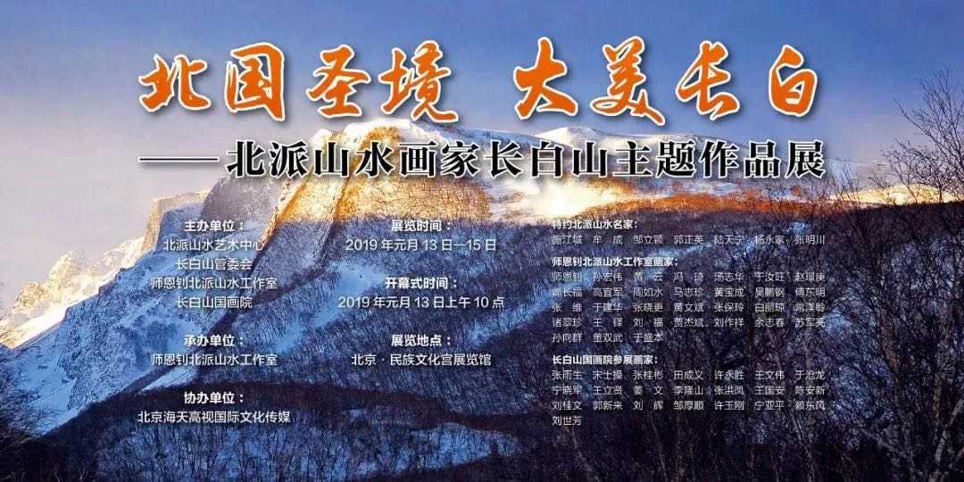 延伸阅读2019年1月13日上午,在北京民族文化宫,“北国圣境·大美长白——北派山水画家长白山主题作品展”隆重启幕。开年之际,60余位北派山水画家以风格各异的艺术呈现,将长白山的自然之美与中国山水画的艺术之美融合,为首都人民献上一场难忘的视觉盛宴。