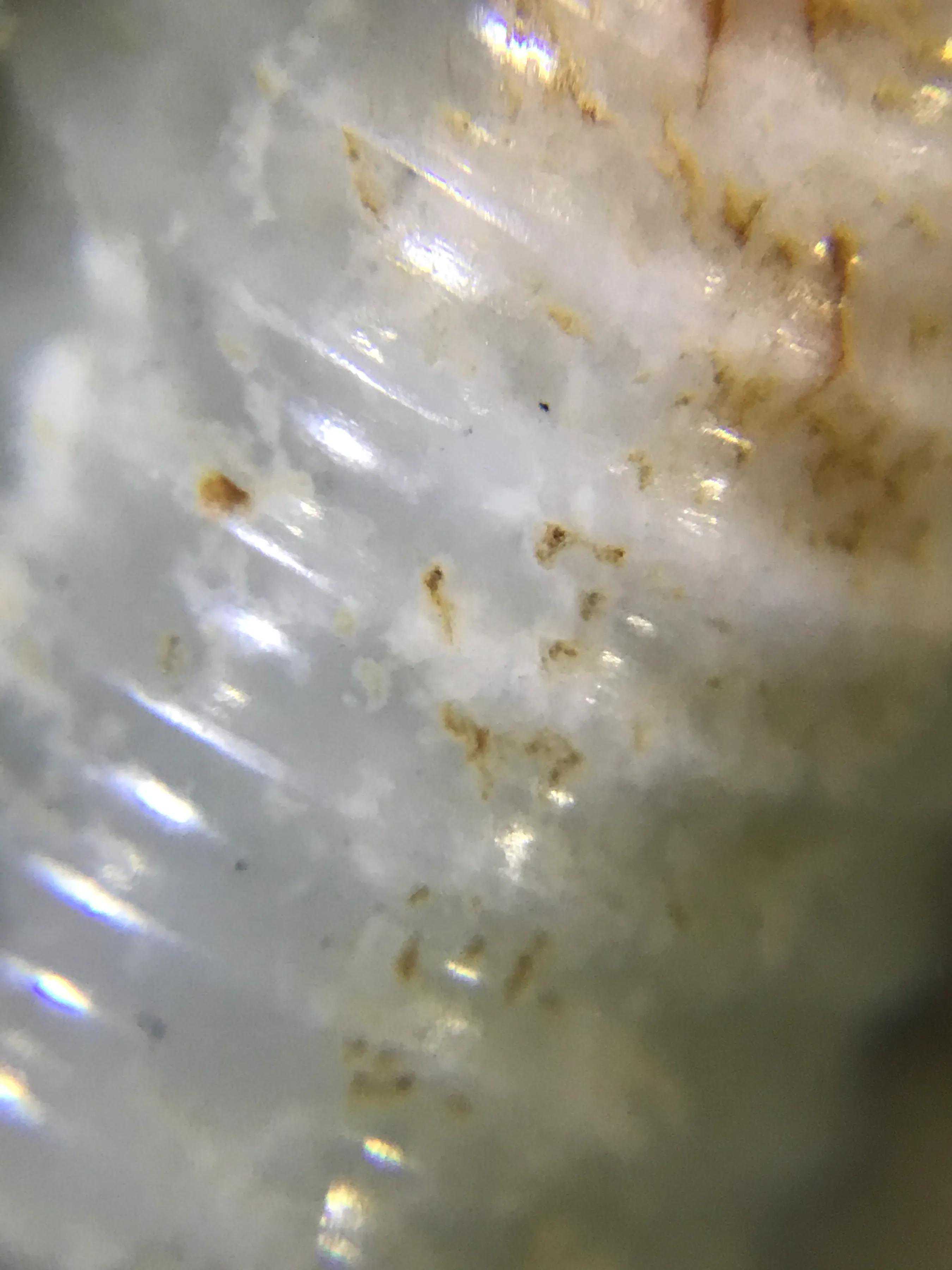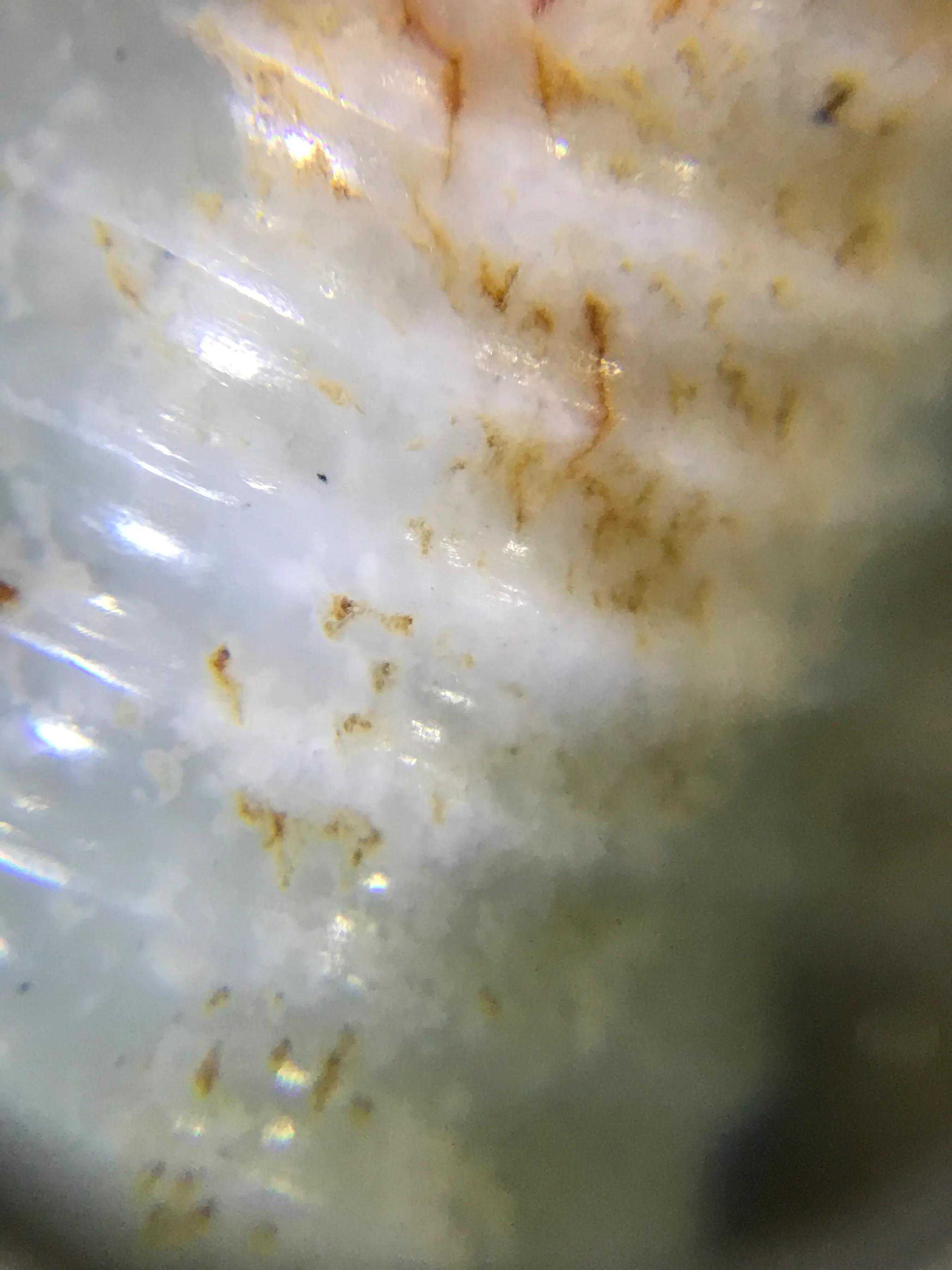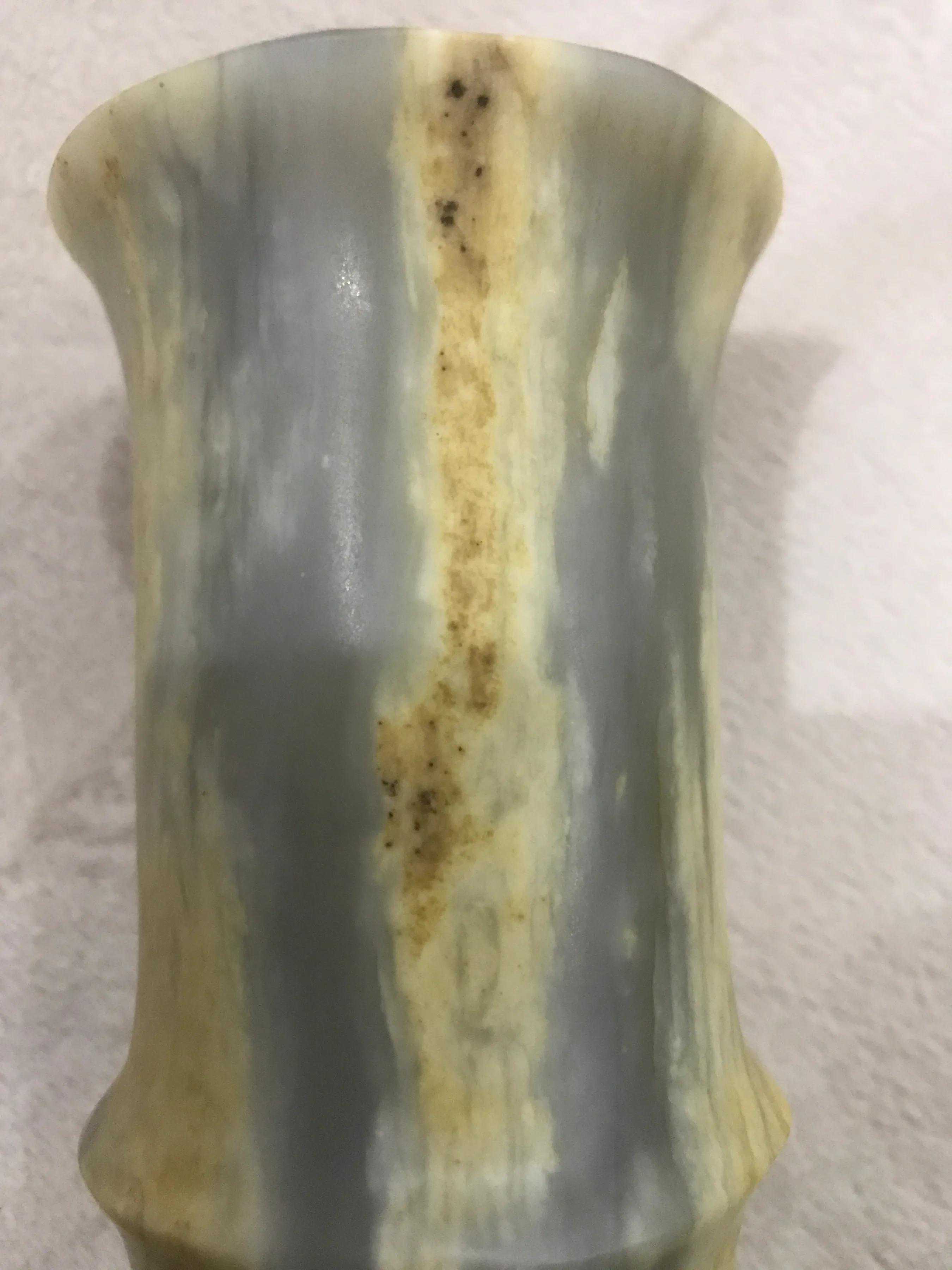 齐家文化的竹节圆筒形玉器(玉箍,玉琮,玉簋),土沁的同时,有钙化现象,在微观放大情况下,钙化的同时有土咬土蚀,肉眼难分辨。