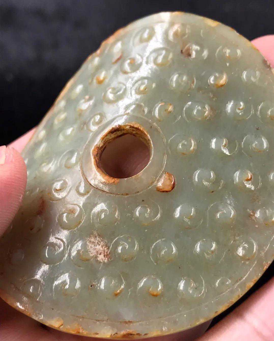 说明一个问题,高古玉土沁的同时,正常会有土蚀土咬现象。