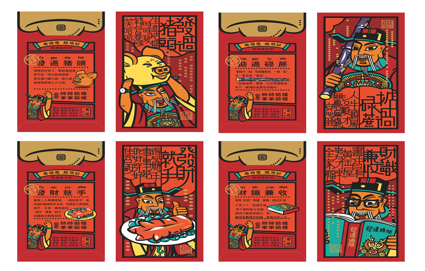 年度展览上,来自广东本地的非遗传承人、院校师生、文创企业各出奇招,跨界推动非遗融入年轻人群。现场展出一组“画风清奇”的年画把不少观众逗乐了。