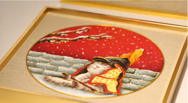 红墙、白雪、花猫,济南百花洲工作站在“故宫系列”摆件中,将故宫博物院最有辨识度的三个元素以“掐丝珐琅彩”技艺重现。猫咪萌态可掬的样子,让人忍不住想隔空摸一摸。