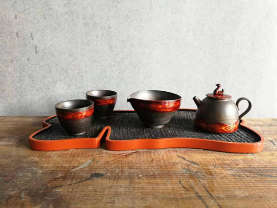 “我在茶具中加入了漆器工艺。生漆不怕烫,刷在杯沿,既好看又好端。”邹传志说。上了漆艺与陶器,既增加了材质差异的对比而且更不容易烫手,美观与实用兼得。