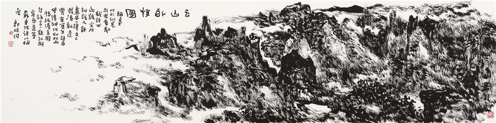感情的冲动与理性的沉思,相互矛盾、相互纠结、相互制约、相互权衡,从而达到了用笔朴拙而不轻挑,涩辣而不媚俗,率真而不娇揉,支离而不浮滑,纵而能敛,光怪陆离而又千变万化的苦涩用笔效果。