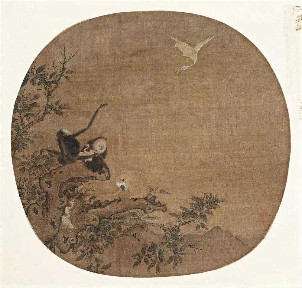 ↑《三猿得鹭图》局部