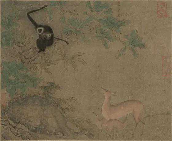 ↑4.易元吉《猿鹿图》(大都会艺术博物馆收藏)