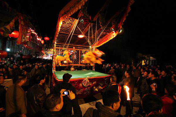 在福建传统节日活动中,舞狮是一项重要内容,含有祈祷平安、贺年贺节的喜庆之意。福建舞狮分文狮和武狮。文狮重形意神态,舞法细腻。武狮重威武技巧,以泉州、漳州、厦门的狮阵、连城客家青狮为代表。