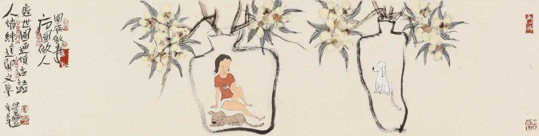 追求画境的雅致、心绪的幽婉,不与世俗争锋,是汪意丰文人情怀的又一彰显。在他的文人画作品中,既有摇曳生姿的“瓶中女人”,也有气韵清幽的花卉,还有饱含烟火气的“岁月静好”生活之景。这种气质不仅是笔墨功力的彰显,还是内心修养的积淀。