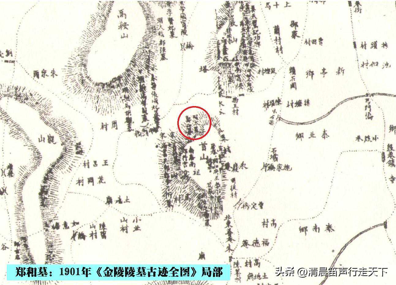 清末张璜《梁代陵墓考》书后附有清光绪27年(1901年)《金陵陵墓古迹全图》,图中牛首山西北标有“明太监郑和墓”。据图例可知,此标示系“仅按府县志传记所载,谓在某地某山某水,实则毫无古迹可考,或余未尝目睹碑阙等物,不敢虚悬妄指也”。