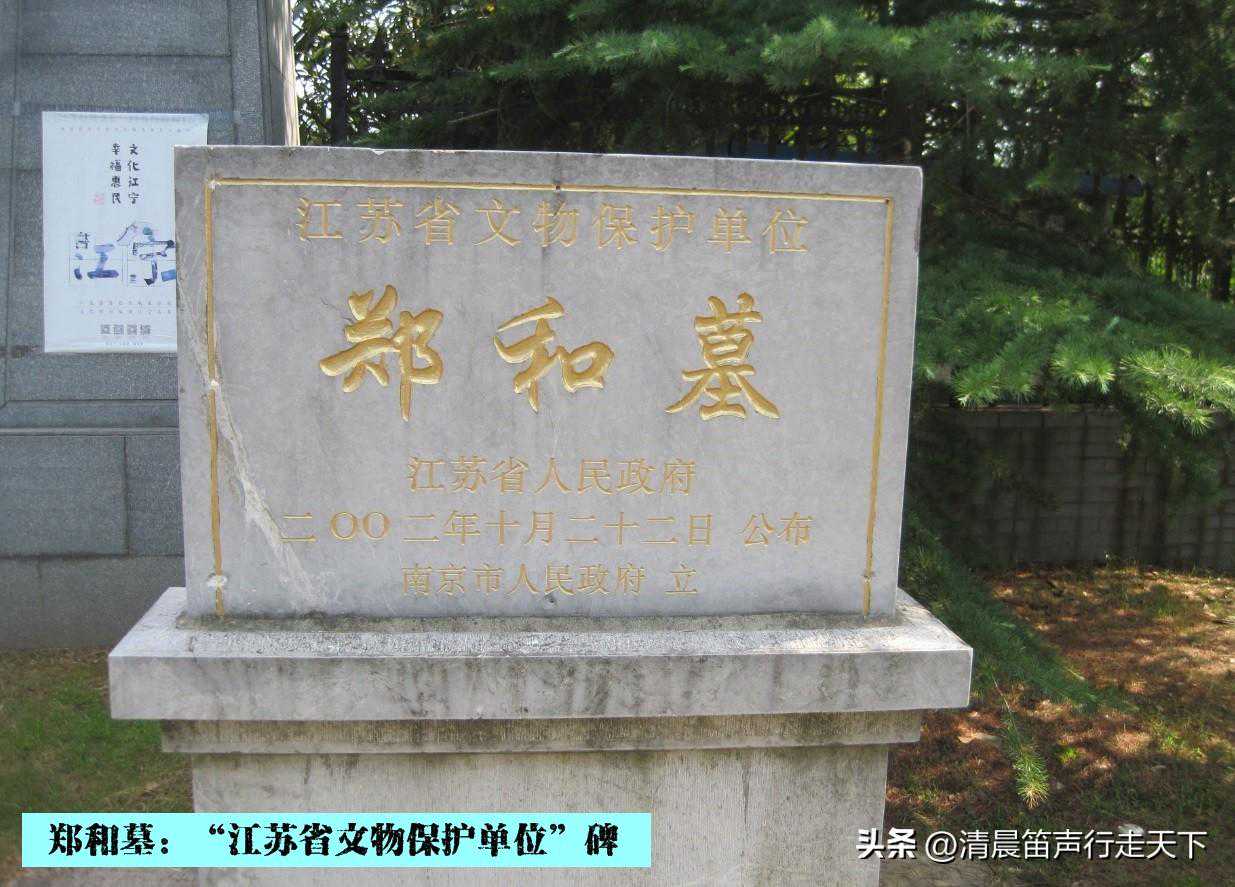 正门前右侧,竖立着文物保护单位碑。郑和墓,1982年8月列入“南京市文物保护单位”名录,2002年10月22日列入“江苏省文物保护单位”名录。