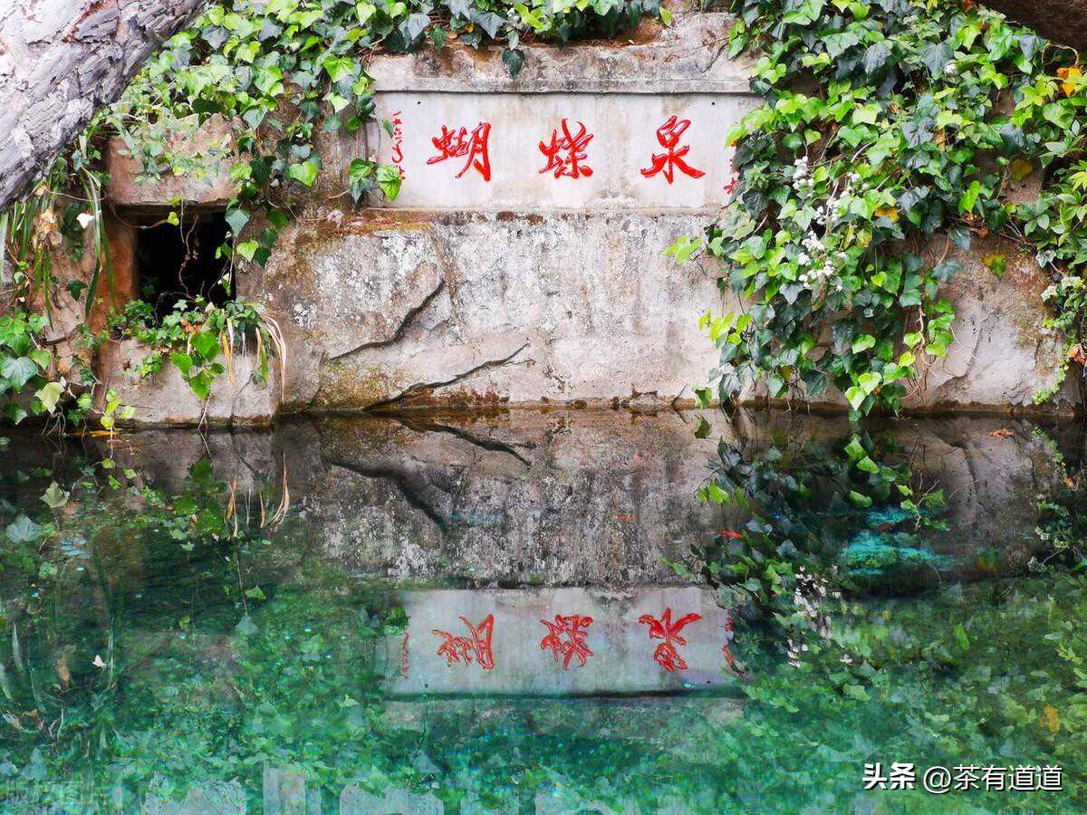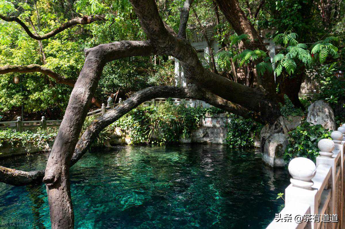 蝴蝶树在泉池西北角的池边有一棵夜合欢古树,树荫遮天蔽日,这就是蝴蝶树,横跨泉上,每当春末夏初,古树开花,状如彩蝶,且散发出诱蝶的清香味,其时蝴蝶群集飞舞,一只只“连须钩足”,从枝头悬至泉面,形成千百个蝶串。