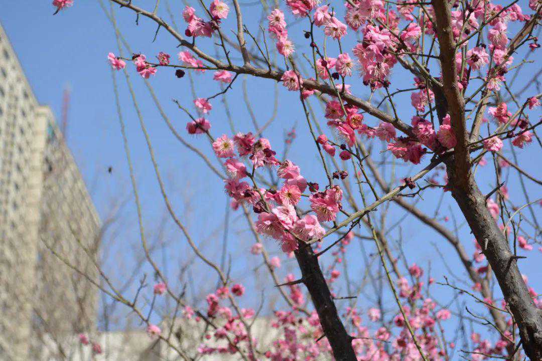 春有约,花不误。根据开花顺序,梅花是最早的,早春就陆续开着了。梅原产中国,是我国的十大名花之一。梅因其用途不同分为花梅和果梅,我们平常所说的梅花即为花梅。蔷薇科杏属,小乔木,稀灌木;树皮浅灰色或带绿色,平滑;小枝绿色,光滑无毛。香味浓,几乎没有花柄,基本都是贴着枝丫开的。花瓣倒卵形,白色至粉红色。我国各地均有栽培,以长江流域以南各省最多,江苏北部和河南南部也有少数品种,某些品种已在华北引种成功。