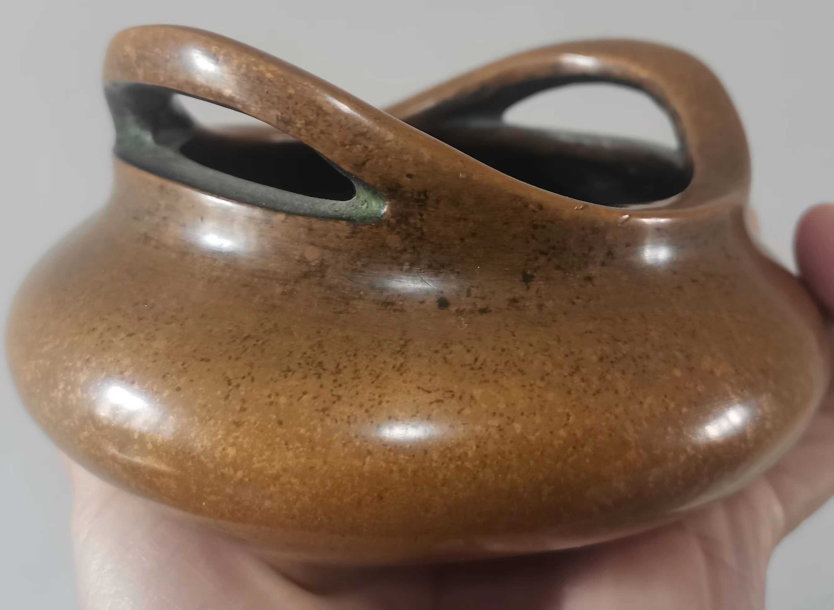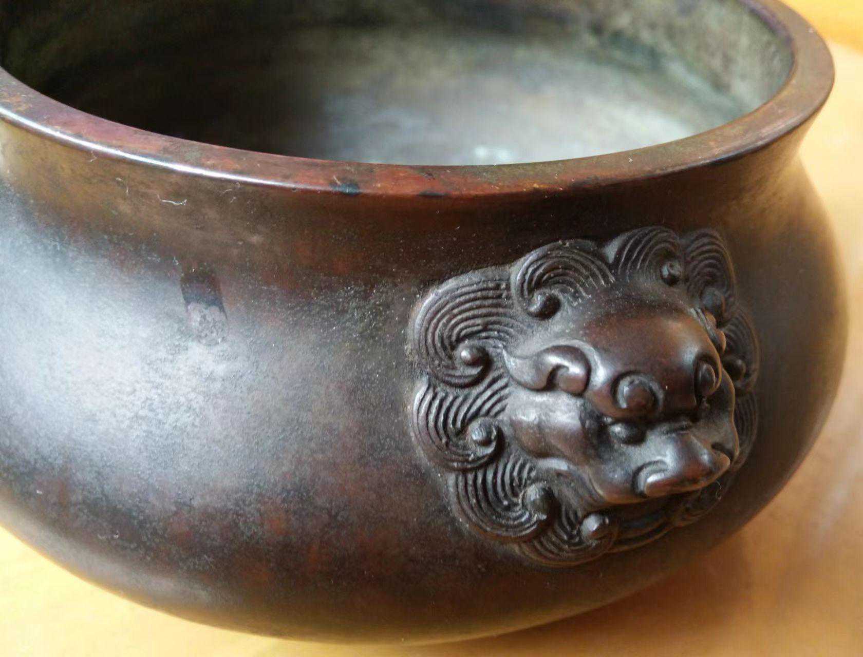 真品宣德炉包浆莹润,宝色内蕴,历久不变。“宣德炉”主要有五色最为藏家痴醉,分别为佛经纸色、栗壳色、茄皮色、棠梨色、紫褐色。以大小而言,宣德炉直径在8-12厘米最为常见,属于小号;直径在15厘米左右的炉是中号,数量比小号少;而直径大于20厘米的铜炉是大号,工艺精者稀见,收藏价值极高。(文/徽京玩家)
