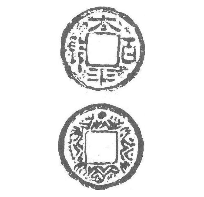 太平百钱的铸主,历来有汉末张鲁、孙吴及西晋赵等种种旧说。1980年,成都小通巷出土太平百钱铜范1件,在一定程度上证明此种钱币为蜀汉所铸。太平百钱钱背多有水波纹,旧说与张鲁天师道有关,但仔细观察这种所谓“水波纹”,觉得更可能是双龙戏珠一类的吉祥图纹。