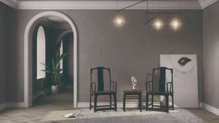 这一《素雅之家》的案例,室内空间以高级灰的色调为主,搭配线条简约规矩的明式家具,辅以绿植与落地壁画,增加空层次感,让整个空间弥漫着时尚又高级的气息。