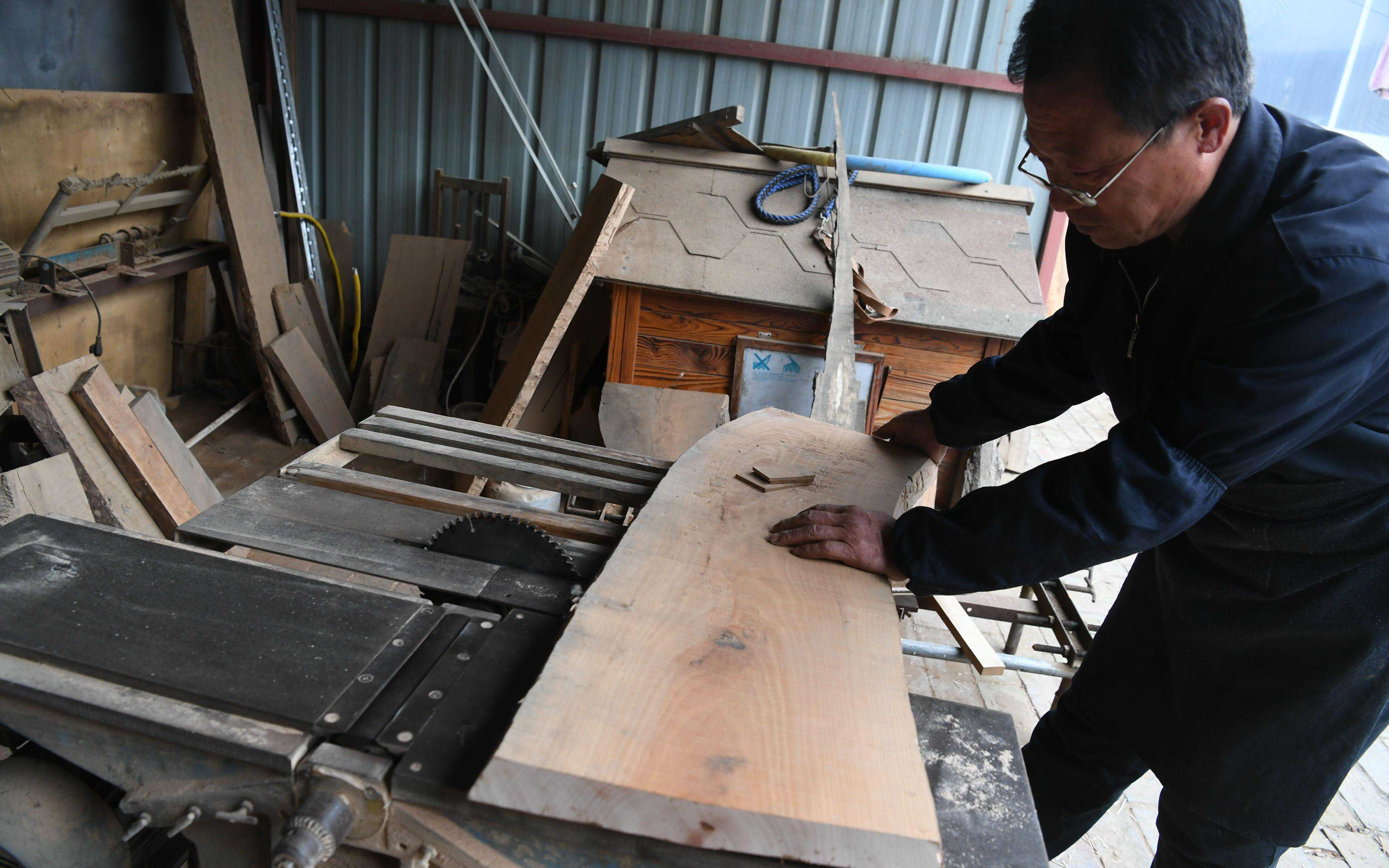 刻累了,他会走到院子里,让眼睛、脖子和手指也歇一会儿,韩金刚的院子里,摆满了收购来的杜梨木,院子里有电锯,他会自己改成木板,随时备用。