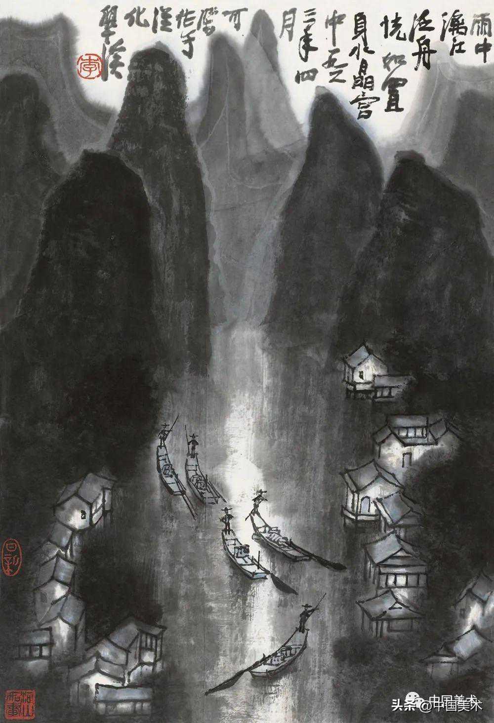 李可染雨中漓江