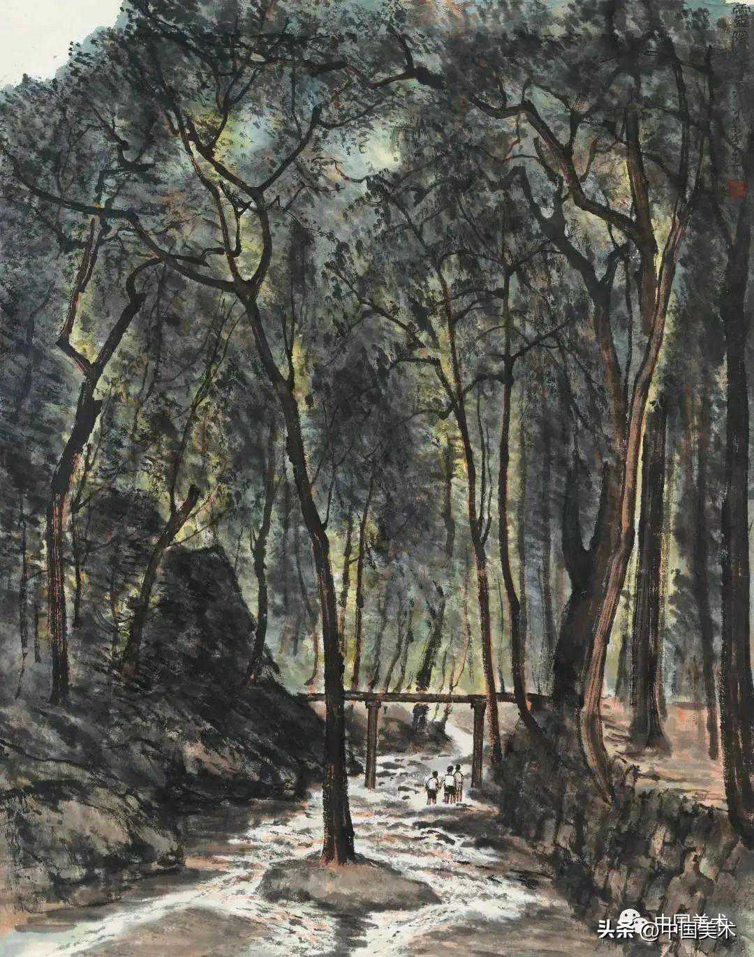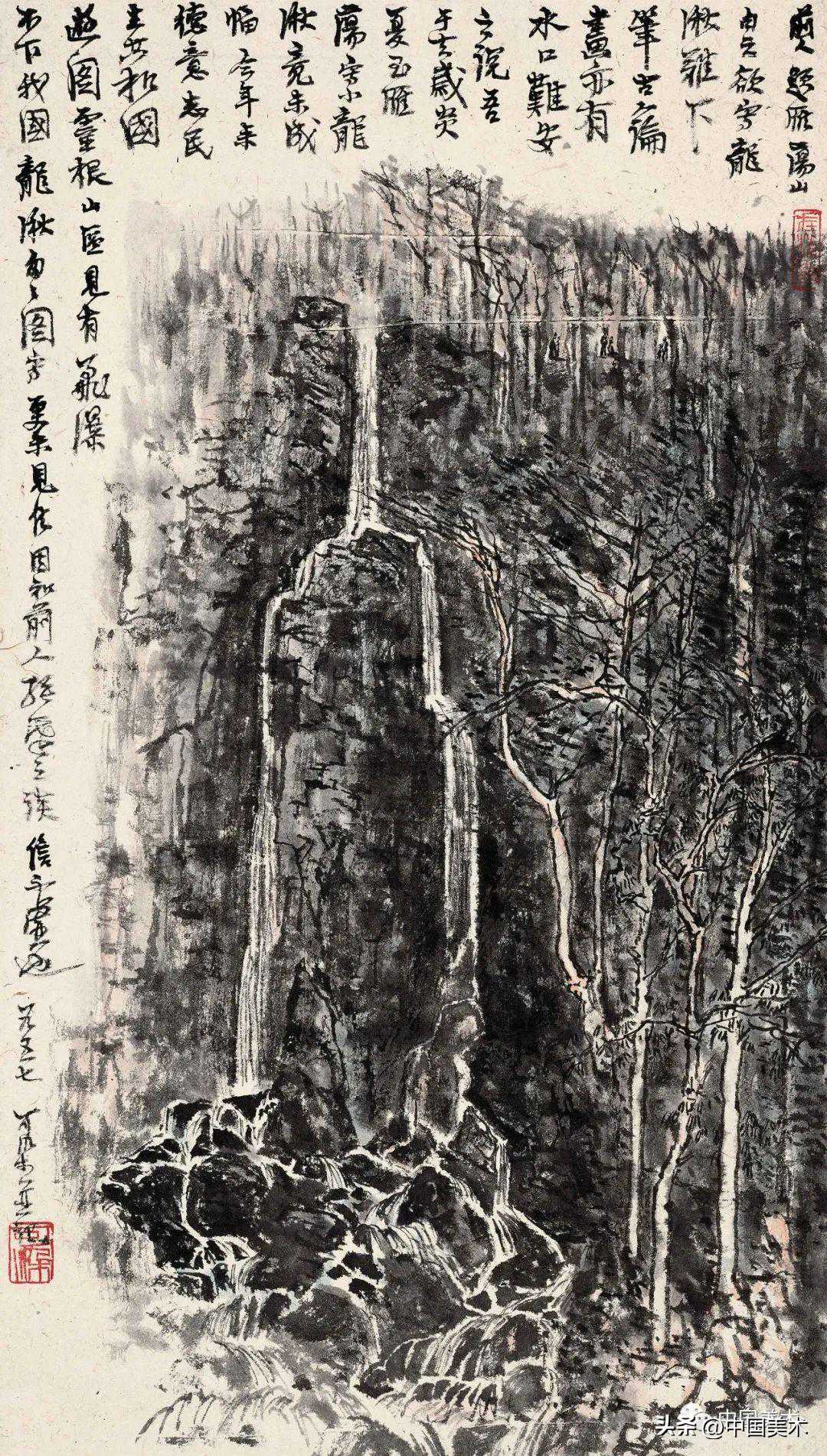 李可染林中飞瀑