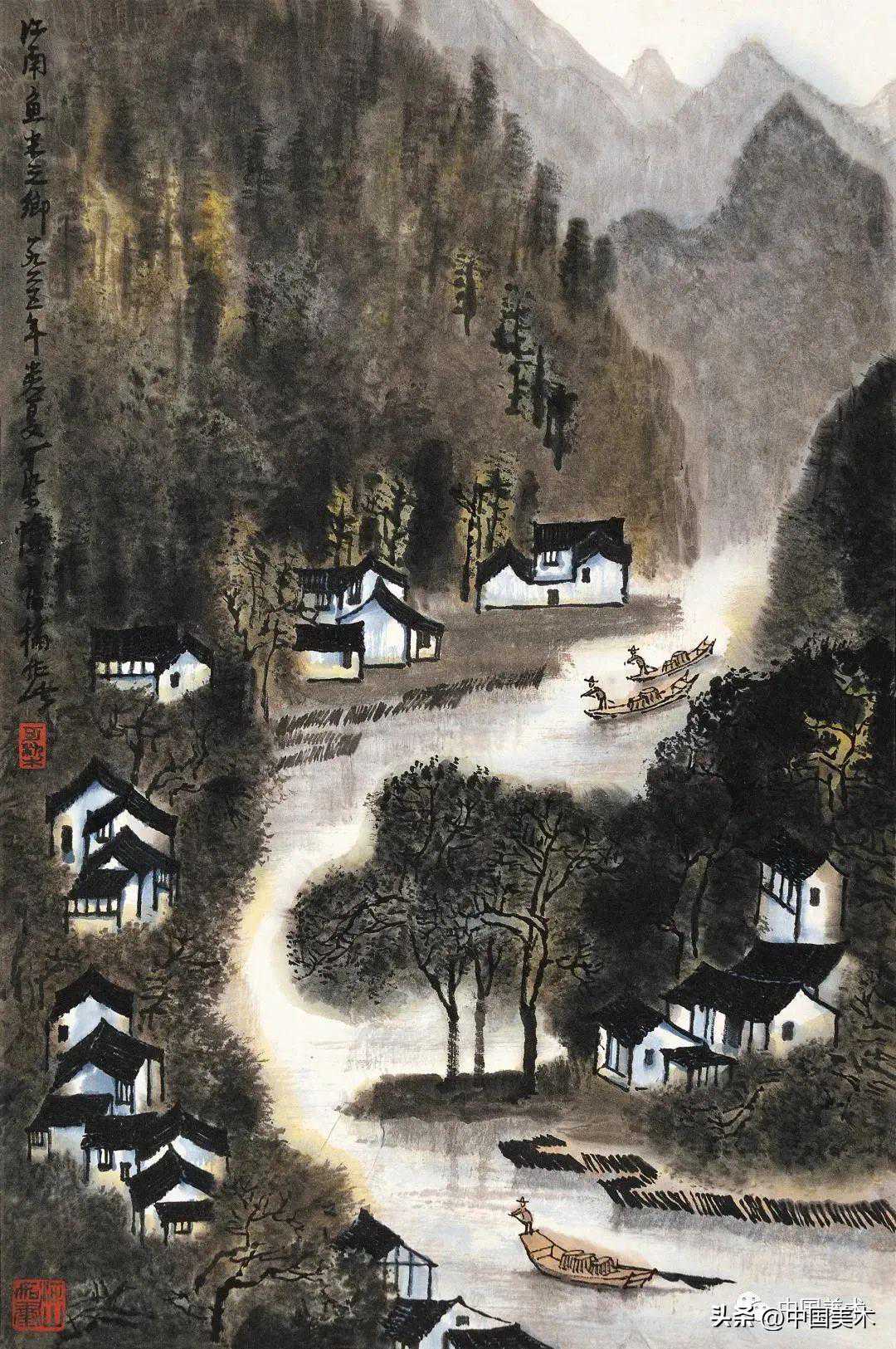 李可染江村清晓